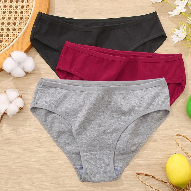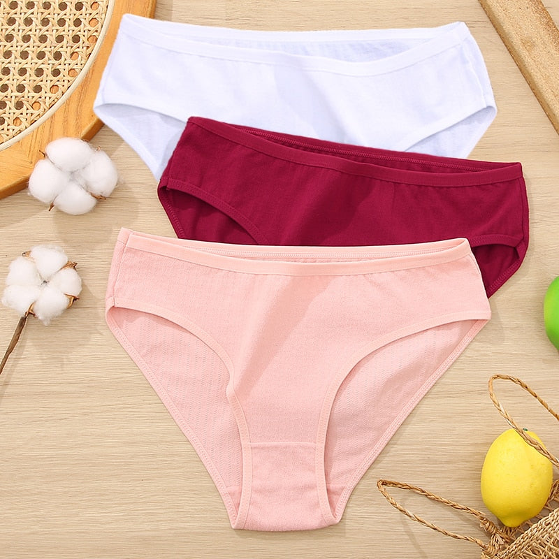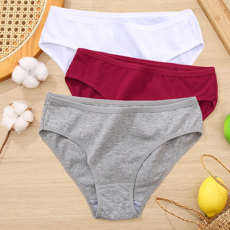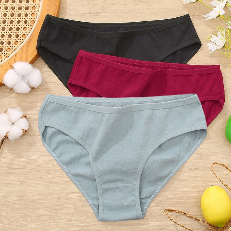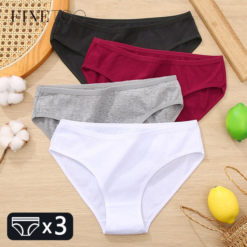 FINETOO 3Pcs Women Cotton Panties Comfortable Briefs Ladies Low-rise Underpants S-XL Girls Underwear Fashion Plus Size Panty New