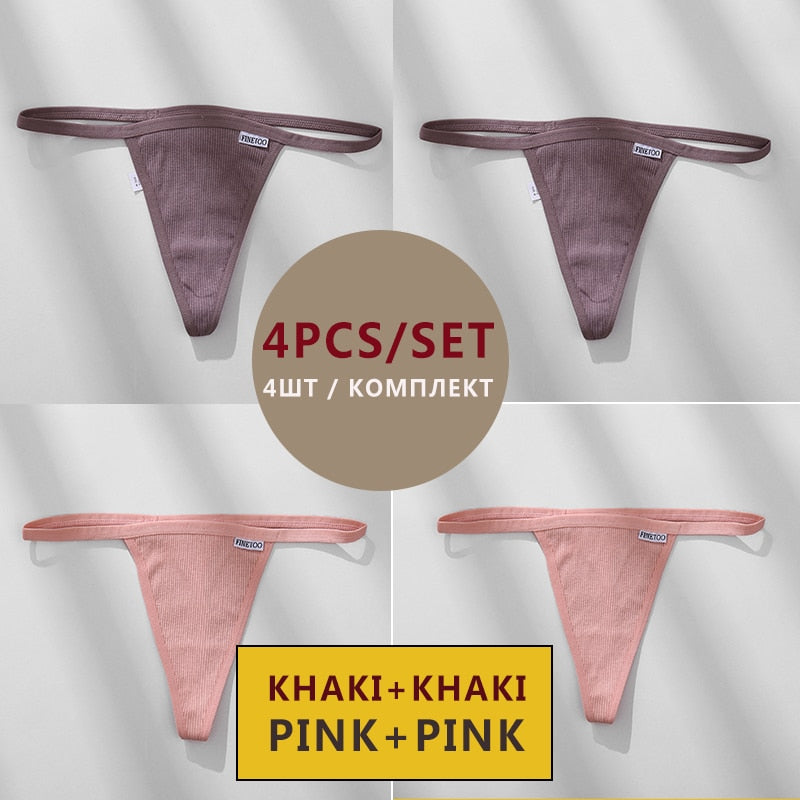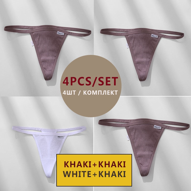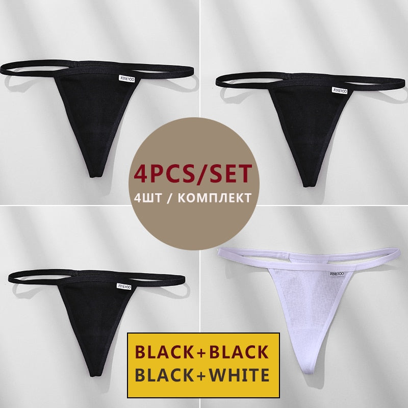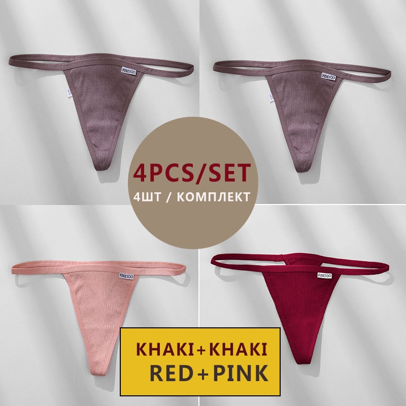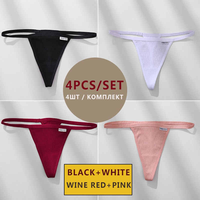 FINETOO 4PCS/Set Cotton Women Panties Woman Thong G-string Underwear Pantys Sexy Low Waist Underpant For Ladies Lingerie Female