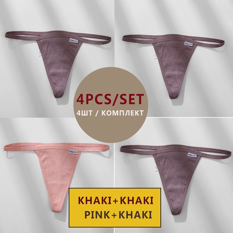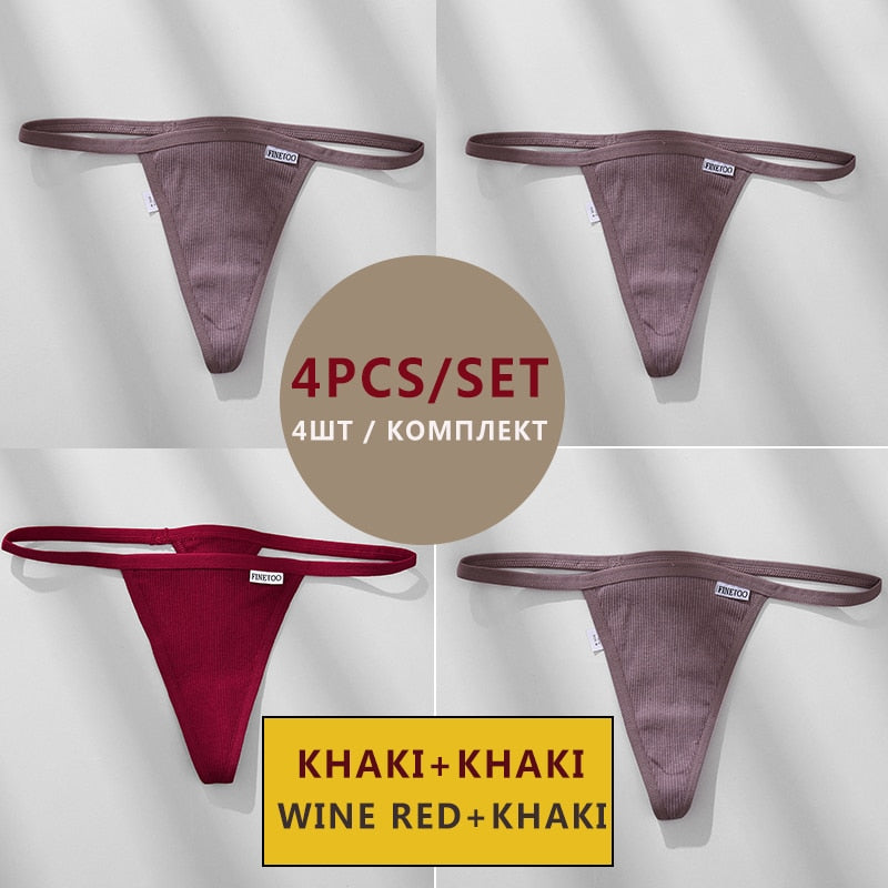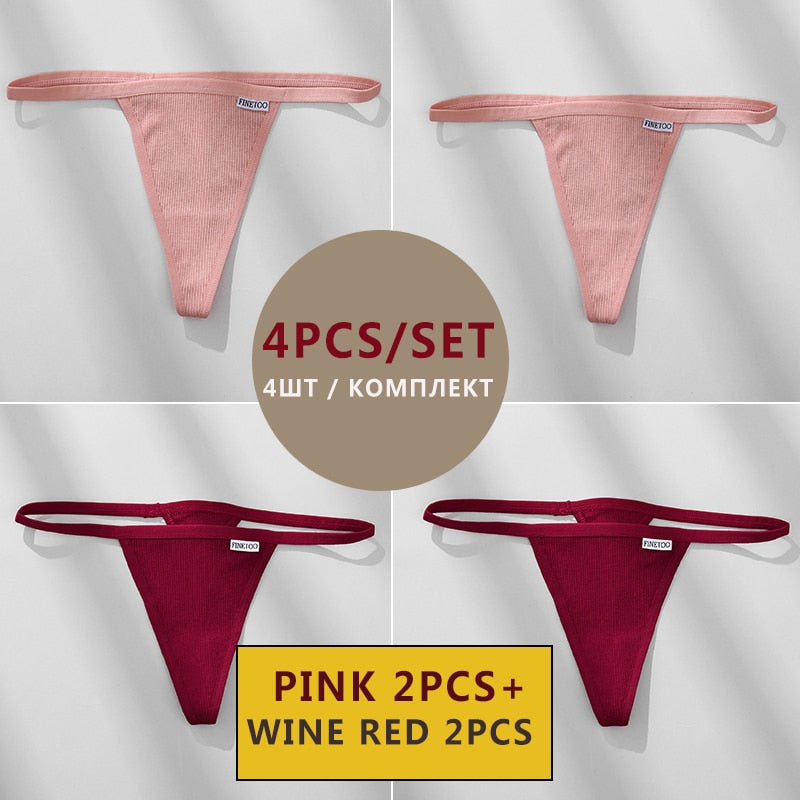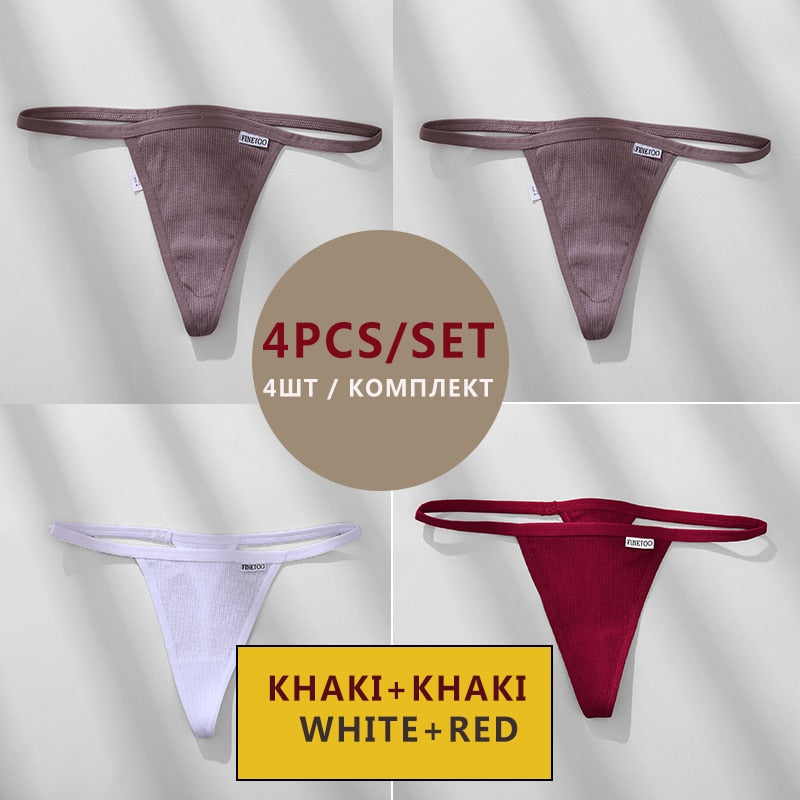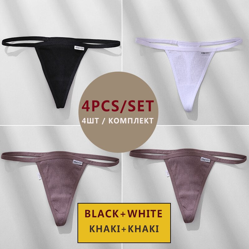 FINETOO 4PCS/Set Cotton Women Panties Woman Thong G-string Underwear Pantys Sexy Low Waist Underpant For Ladies Lingerie Female