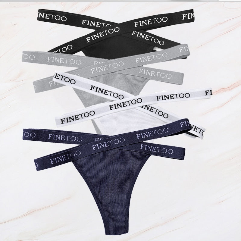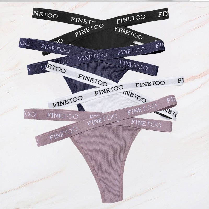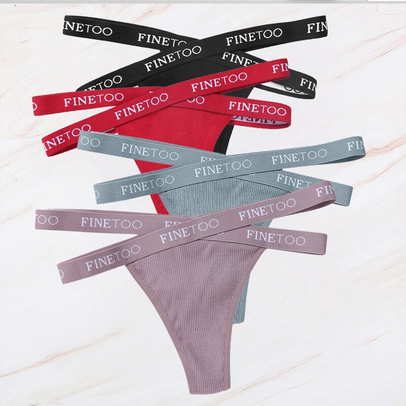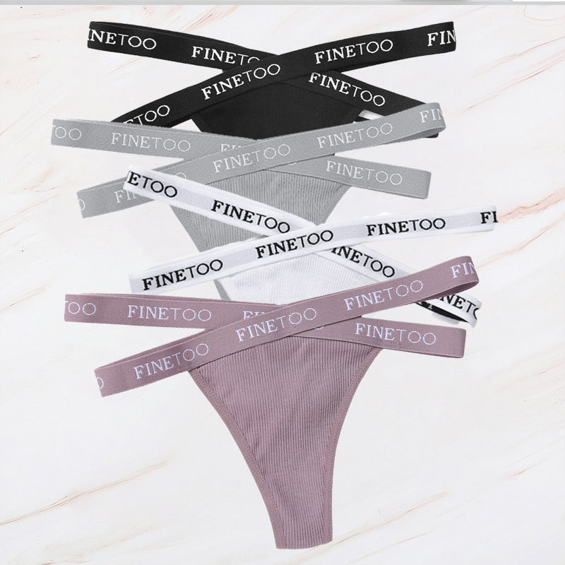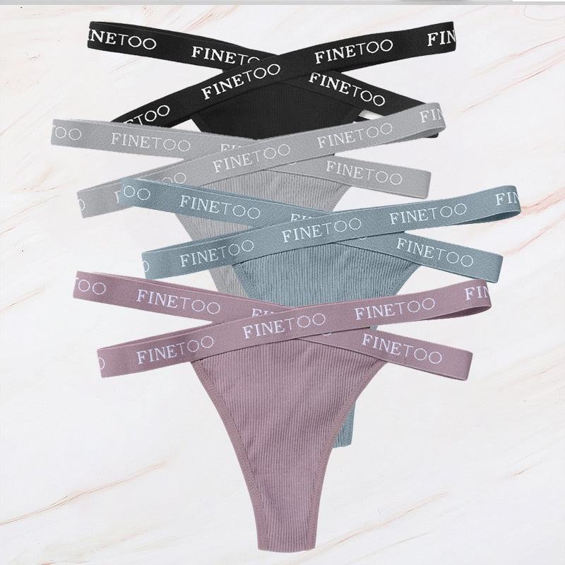 FINETOO 4PCS/Set M-XL G-string Women's Cotton Cross Strap Panties Letter Waisted Underwear Femme Thongs Sexy Hollow Out Lingerie
