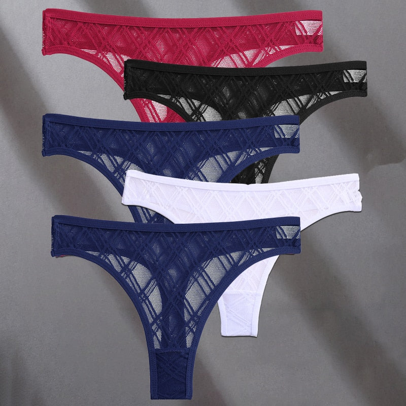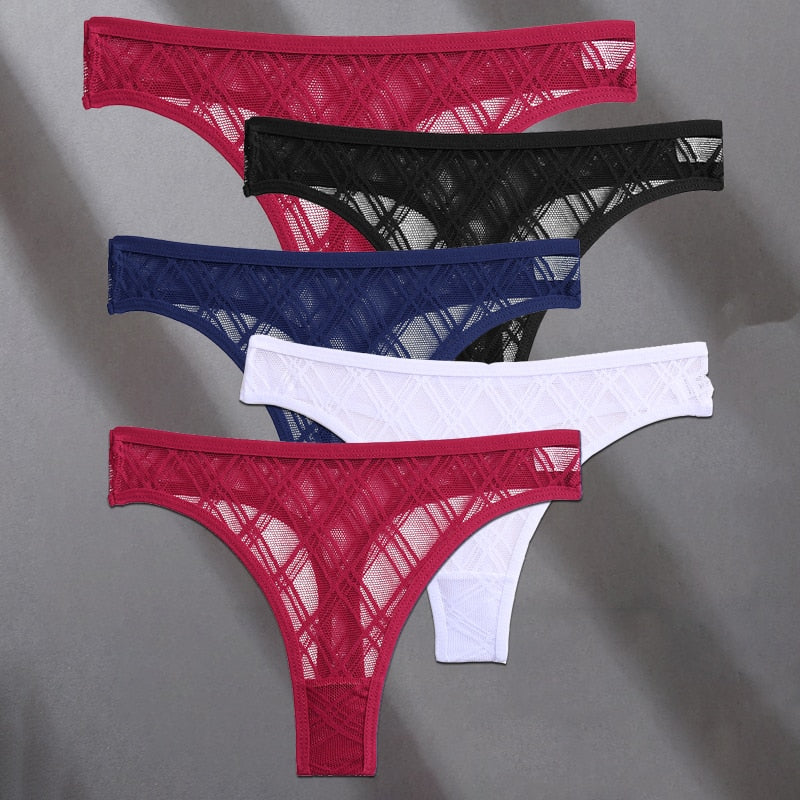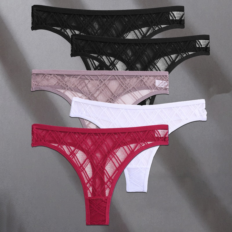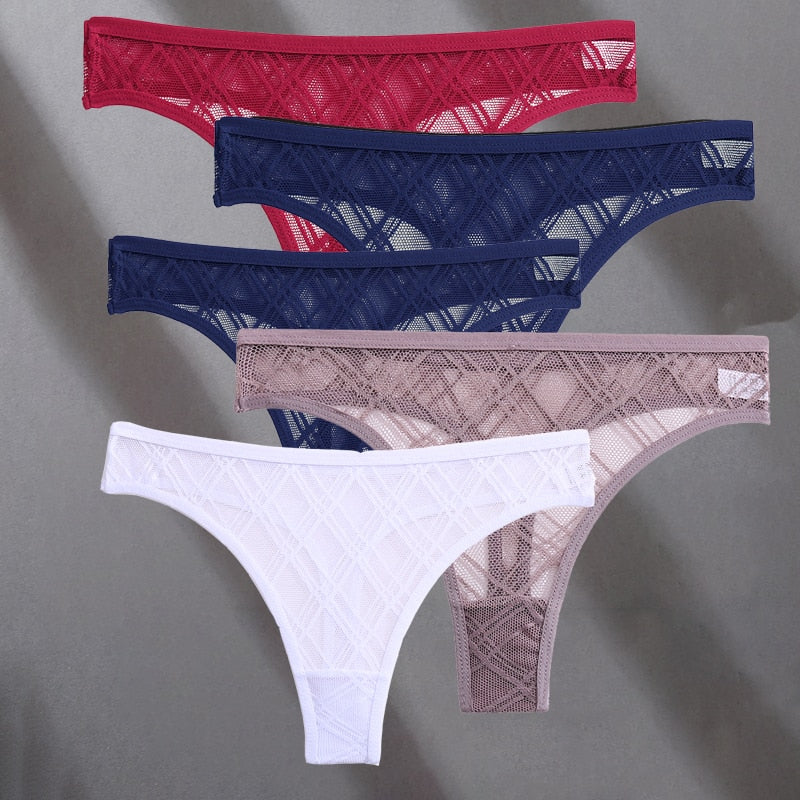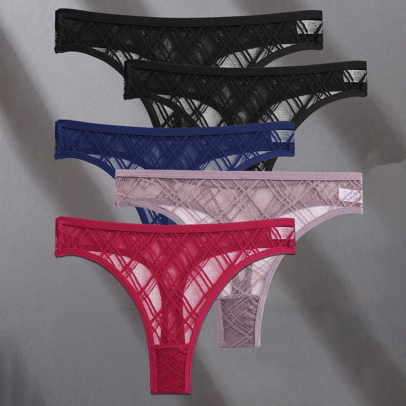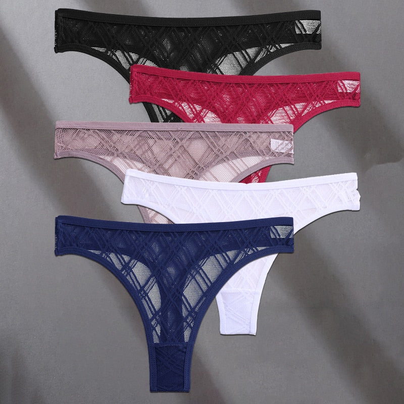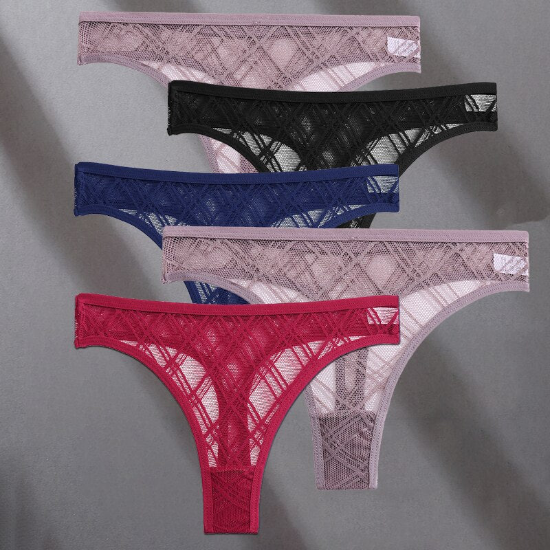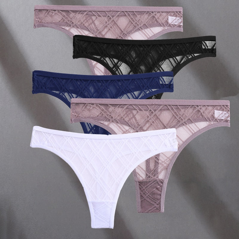 FINETOO 5PCS/Set Lace Sexy Women Thongs Floral Perspective G-string Lingerie Panties Low-Waist Femme Girls Underwear Mesh Pantys