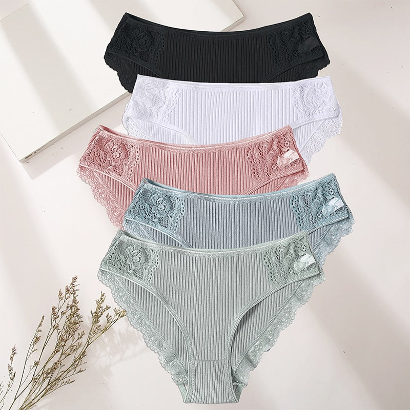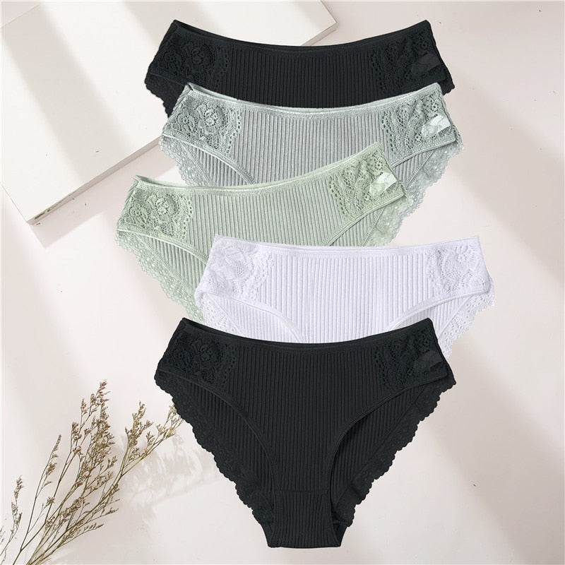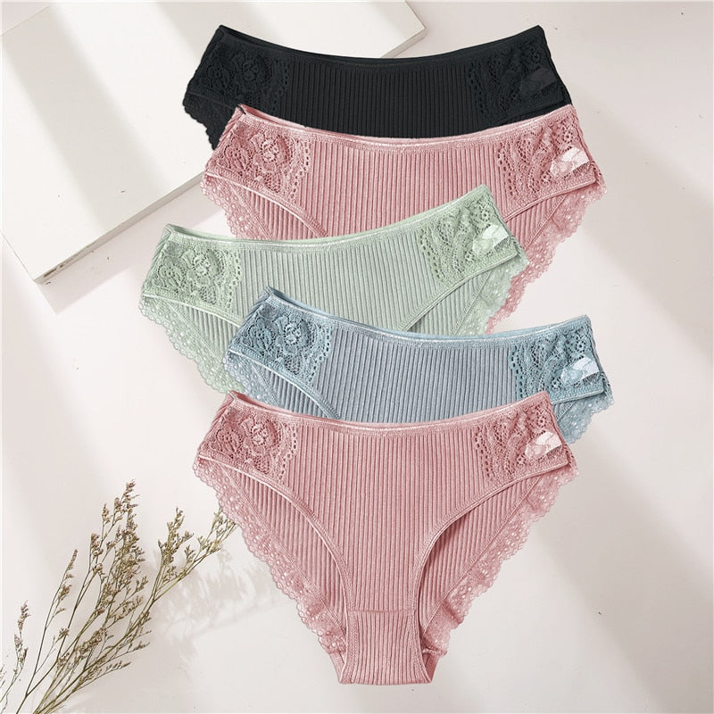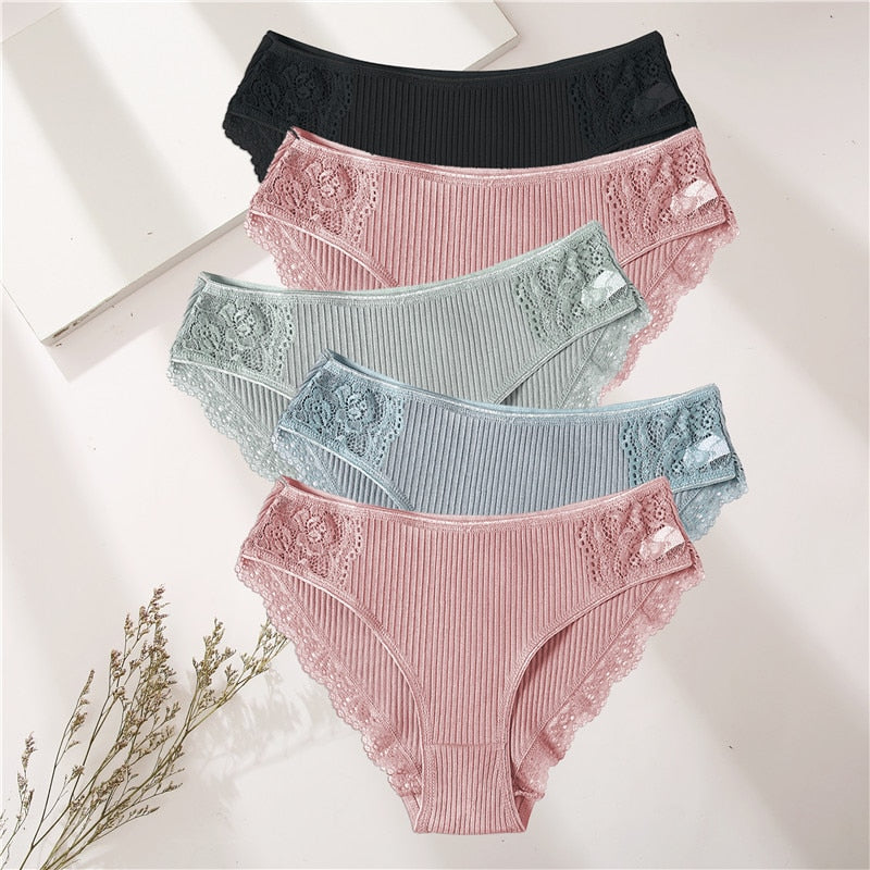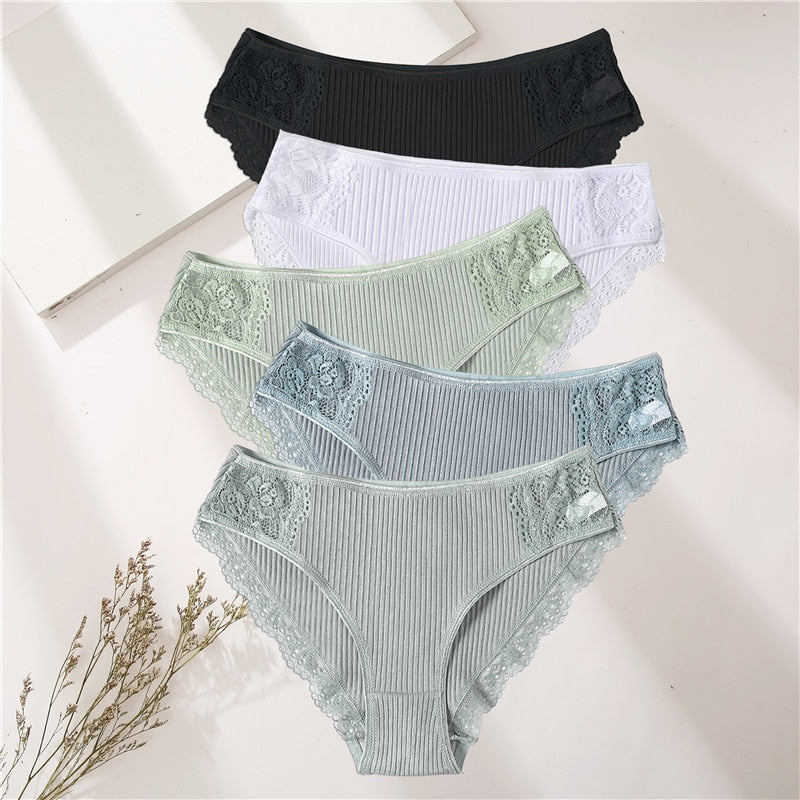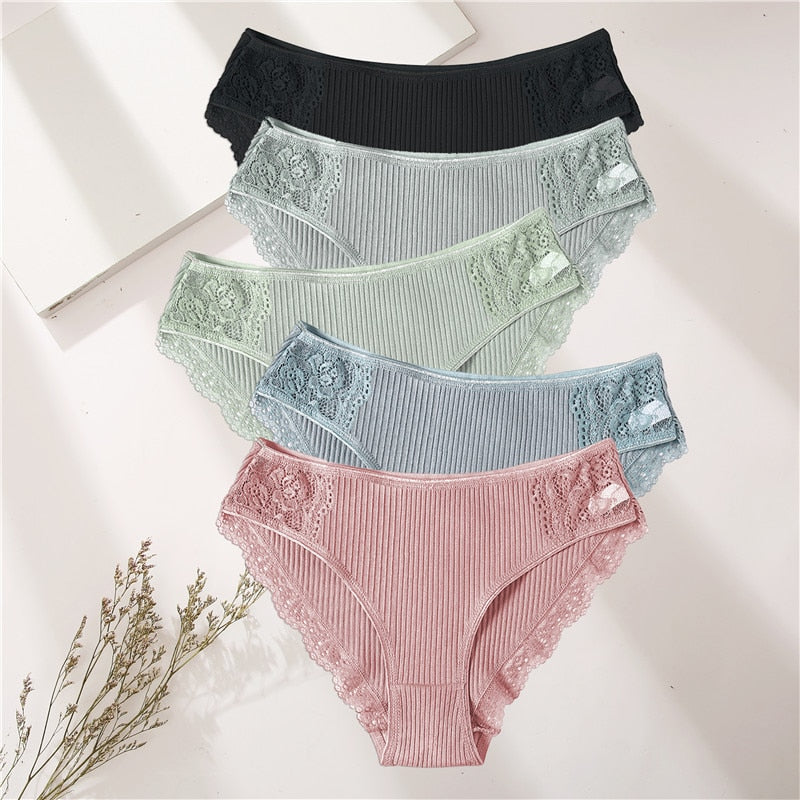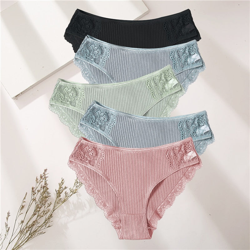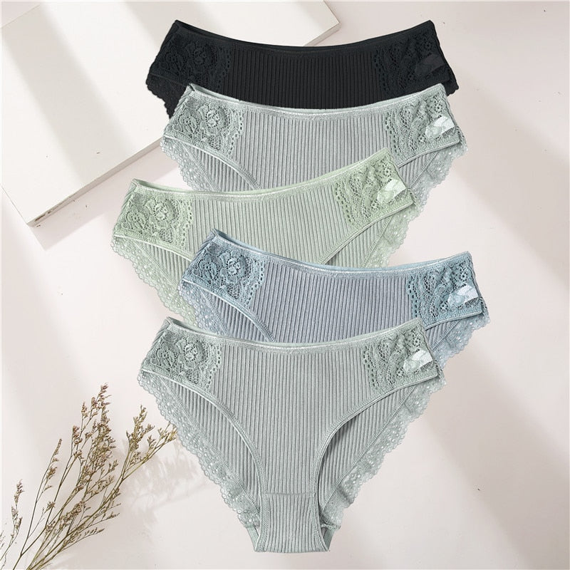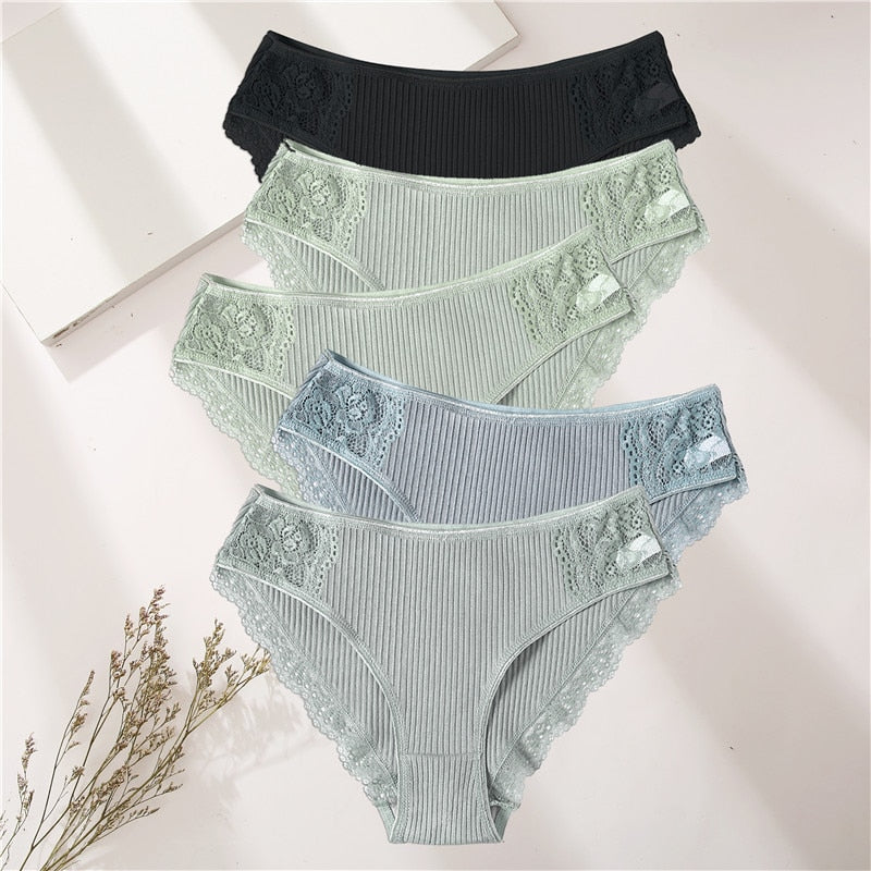 FINETOO 5PCS/Set Women Cotton Underwear Panties Floral Lace Soft Intimates Underpant For Woman Sexy Ladies M-XXL Lingerie Panty