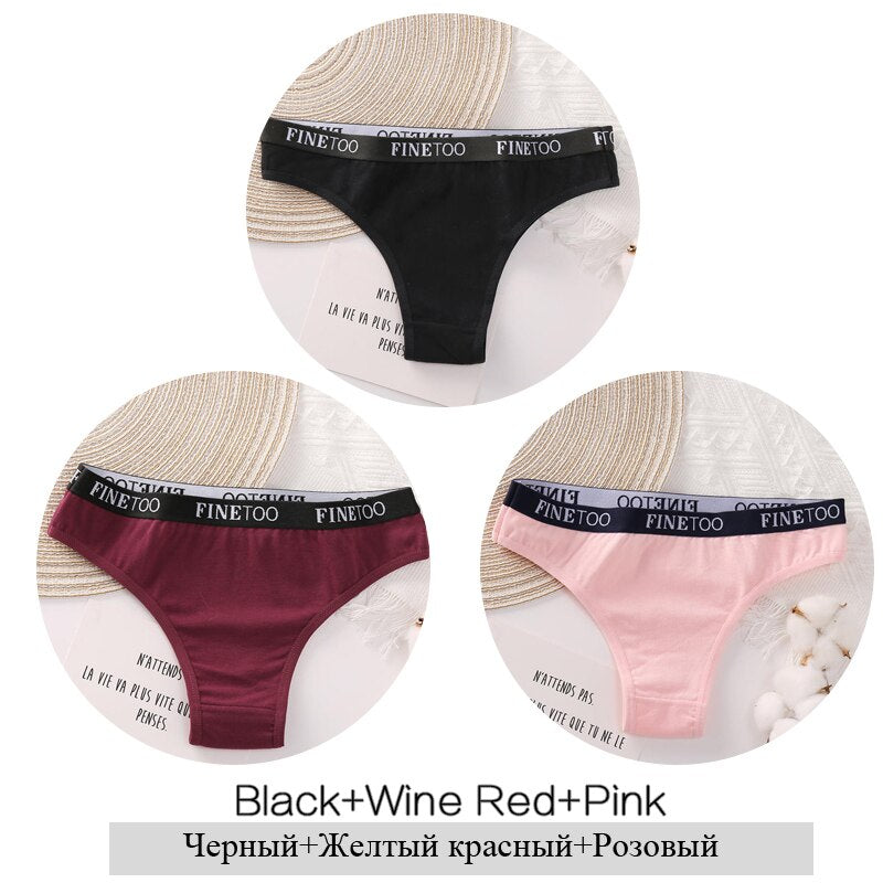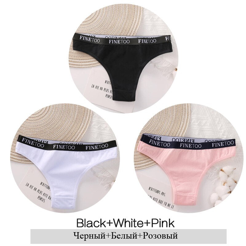 FINETOO Cotton Brazilian Panties Women Letter Underwear Ladies Low Waist Female Underpants Girls Soft Panty Comfortable Lingerie