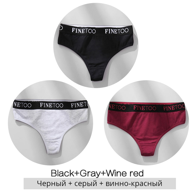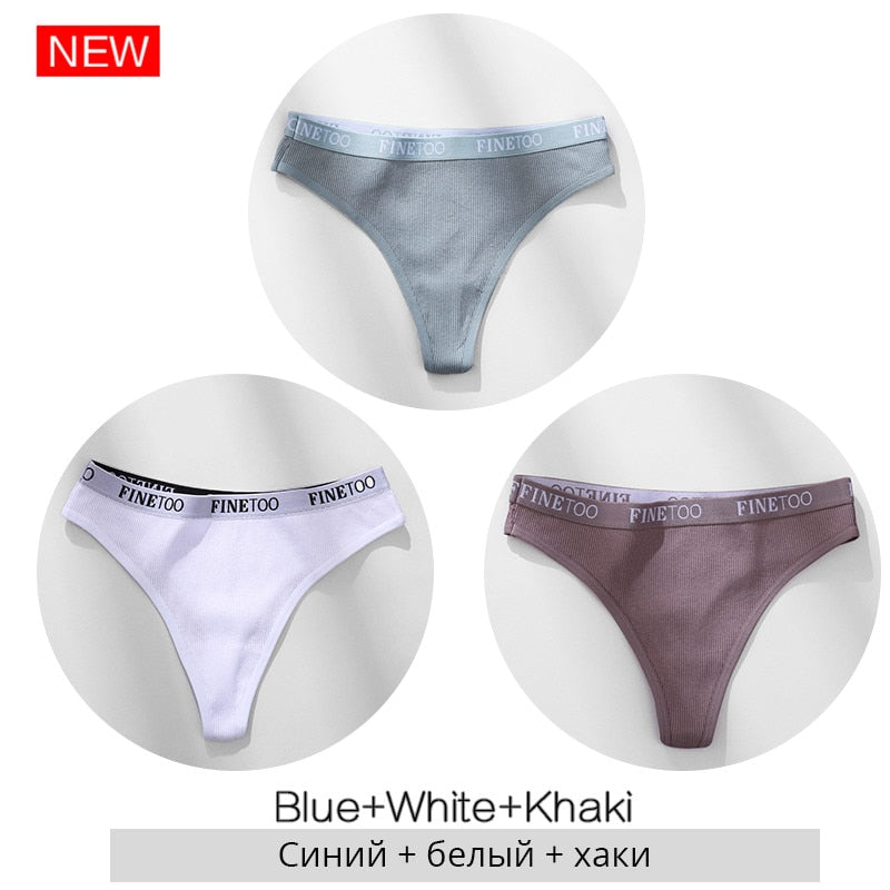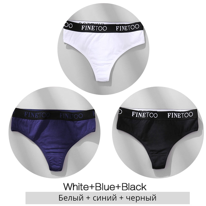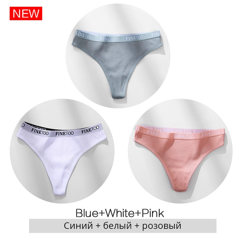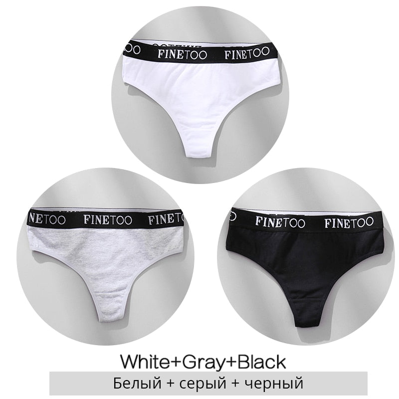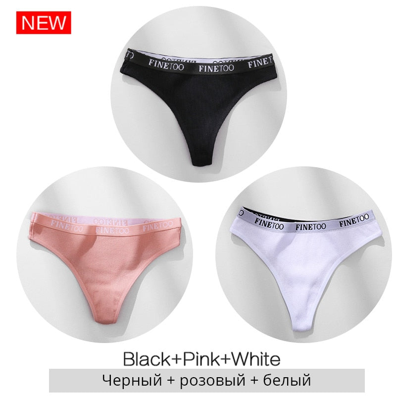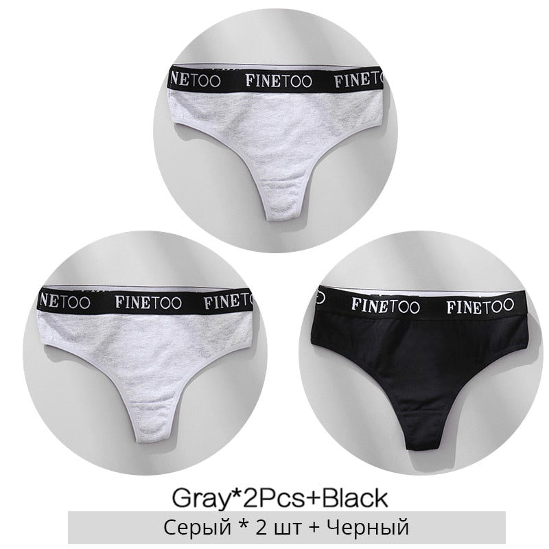 FINETOO Cotton Thongs Women Wide Belt Letter G-string Underwear M-XL Girls T-back Underpants Comfortable Thong Panties Lingerie