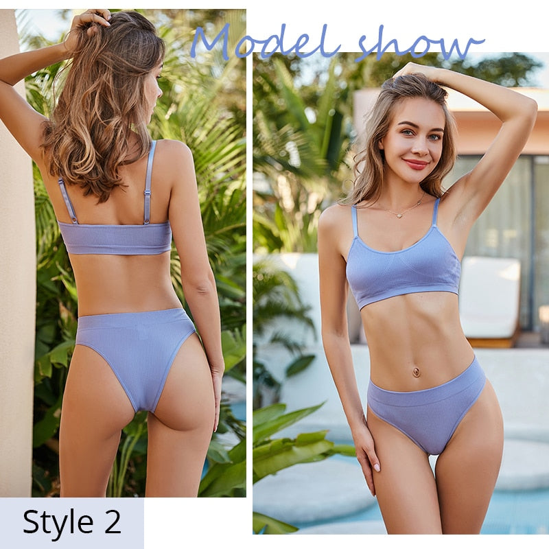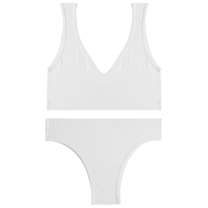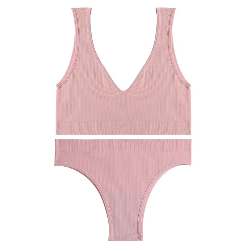 FINETOO Deep V Tops Panties Set Seamless Bralette Women M-XL Sexy Bra Set Backless Underwear Suit Girl Crop Top Underpants Set