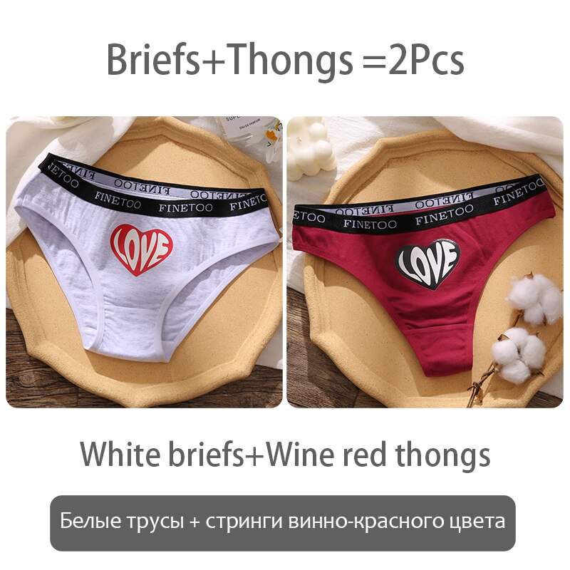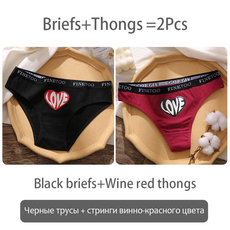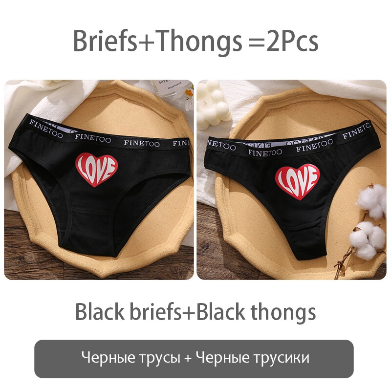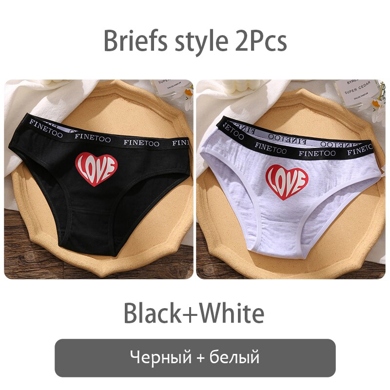 FINETOO Fashion Printing Panties Love Heart Cotton Underwear Women M-2XL Female Underpants Plus Size Girls Briefs Lingerie 2021