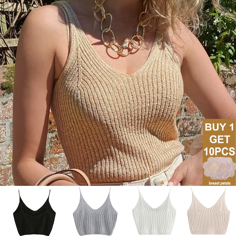 FINETOO Fashion Women Basic Knitted Crop Tops Tank Top Streetwear mujer Vest Short Vest Ribbed Underwear Short Tops Camisole