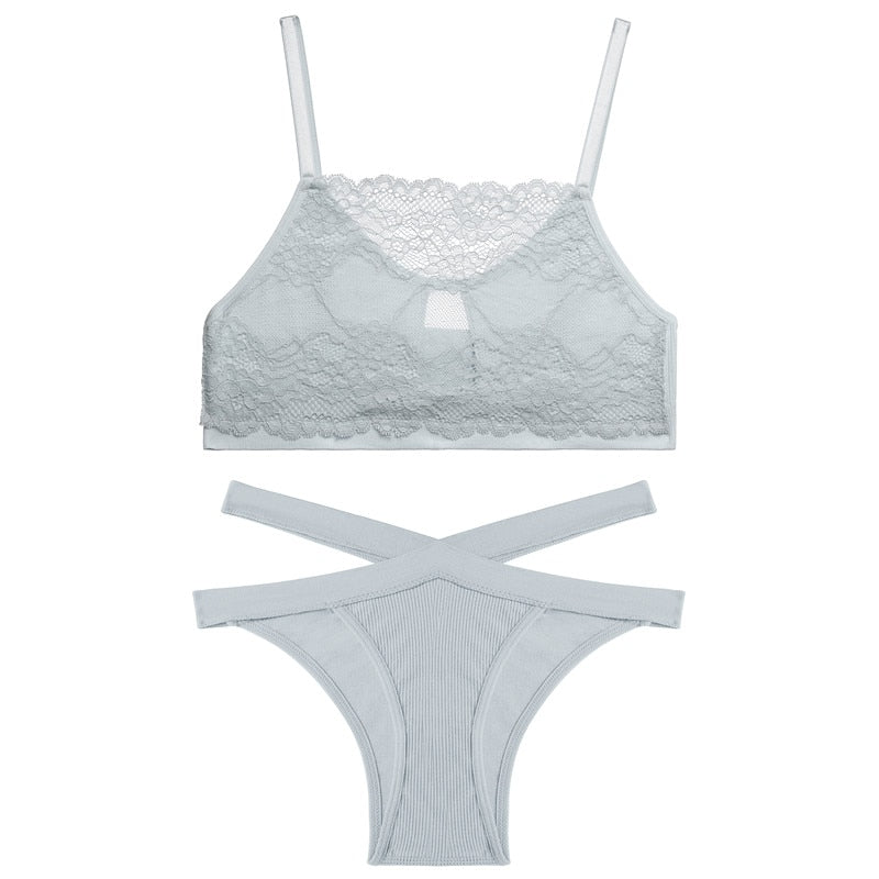 FINETOO Lace Hollow Out Bra Set Women Sexy Wireless Tops Soft Brazilian Panties Fashion Tube Top Low Waist Underpants Lingerie