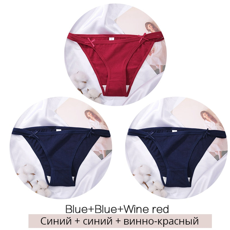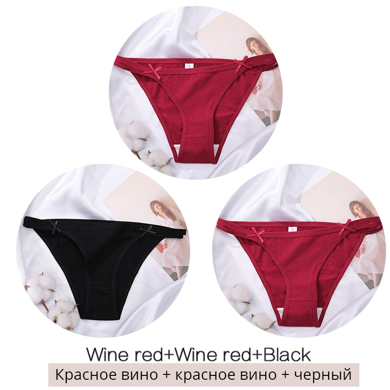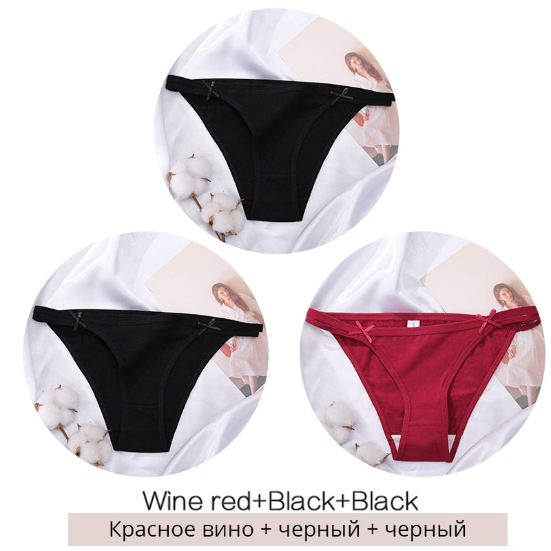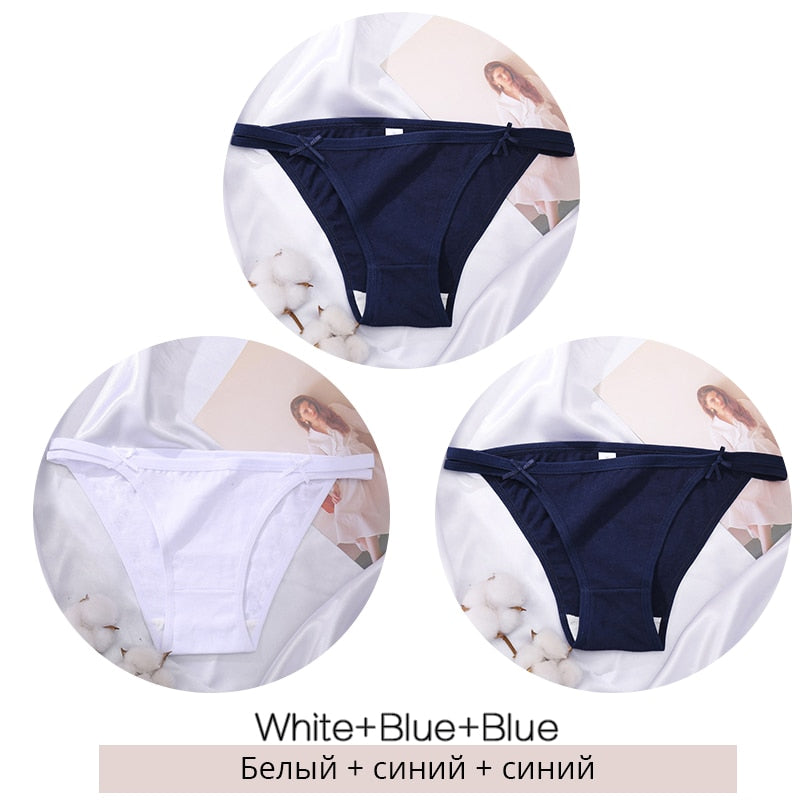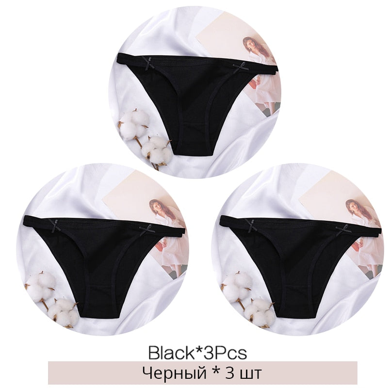 FINETOO M-2XL Bow Cotton Panties 3Pcs/set Women Briefs Girls Plus Size Underpants Low-rise Hollow Underwear Female Lingerie 2021
