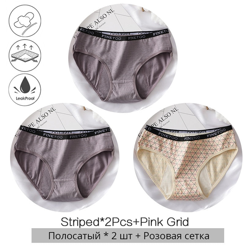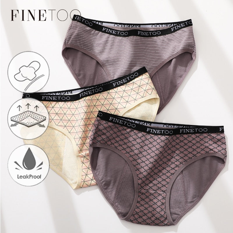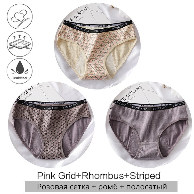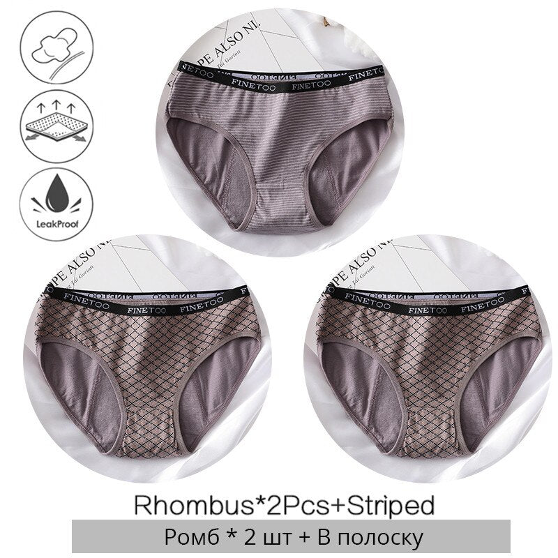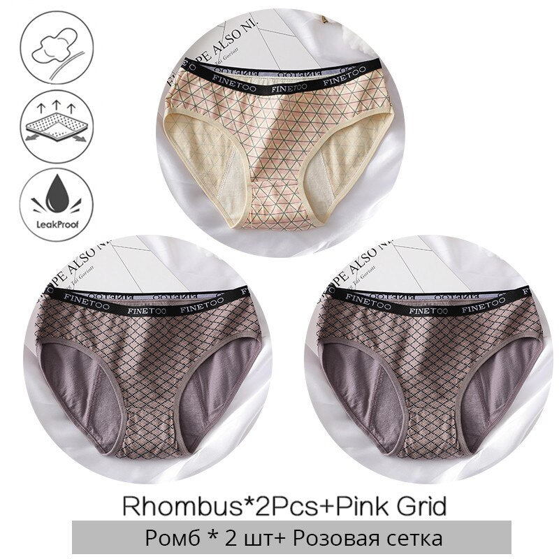 FINETOO Menstrual Panties Women Low-rise Priting Leak Physiological Underwear Ladies Period Proof Briefs Underpants Female Panty