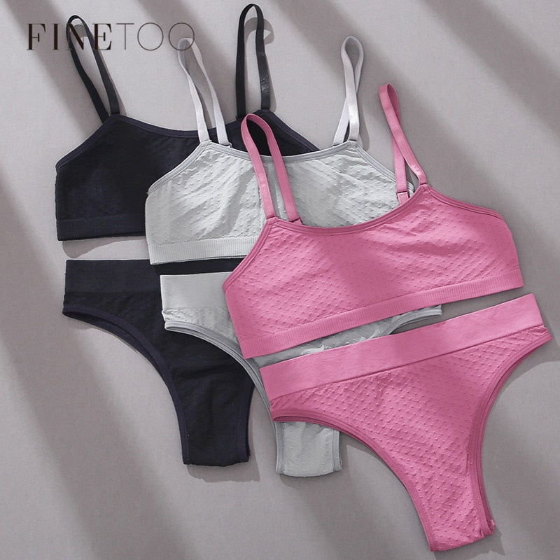 FINETOO S-2XL Seamless Bra Set Women Jacquard Underwear Suit 3D Dots Bras Set Soft Tops Low Waist Brazilian Panties Lingerie New