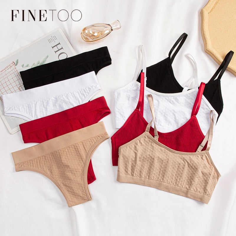 FINETOO Seamless Bra Set Women Wireless Crop Top Suit Sexy Female Tops Low-Rise Panties Comfortable Basic Bras Set Girl Lingerie