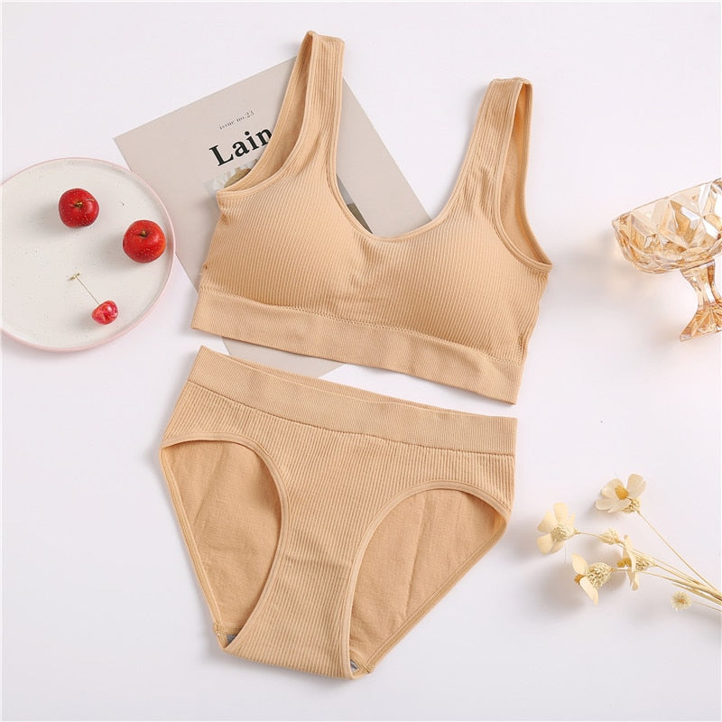 FINETOO Seamless Tops Set High Waist Panties Women Wireless Underwear Suit Soft Padded Bras Set S-XL Backless Bralette Lingerie