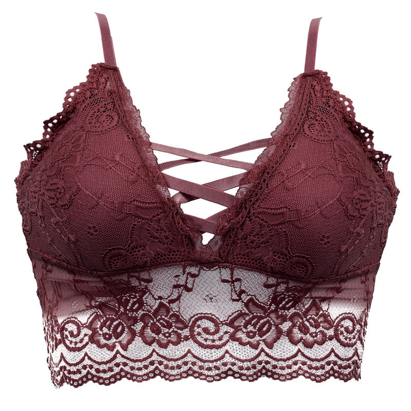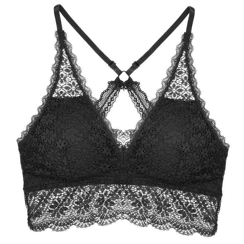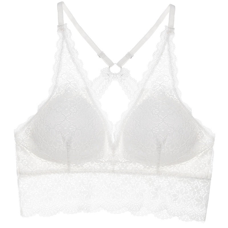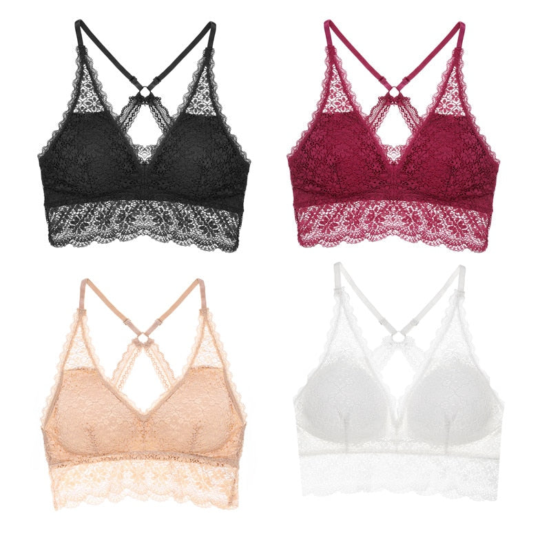 FINETOO Sexy Bralette Padded Bras For Women Transparent Wireless Bra Lace Intimates Lace Bralette Backless Brassiere Crop Tops