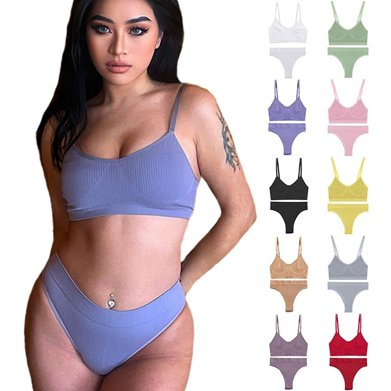 FINETOO Women Bra Set Female Underwear Bralette Ribbed Tops Girls Sexy Lingerie Basic Stretchy Brassiere Tank Crop Tops Suit New