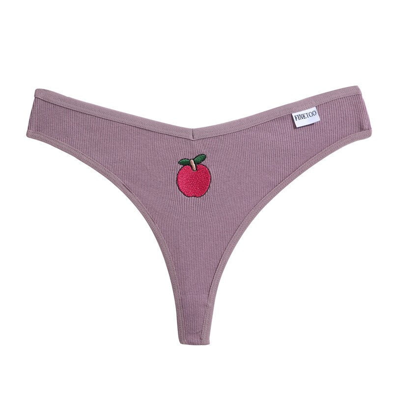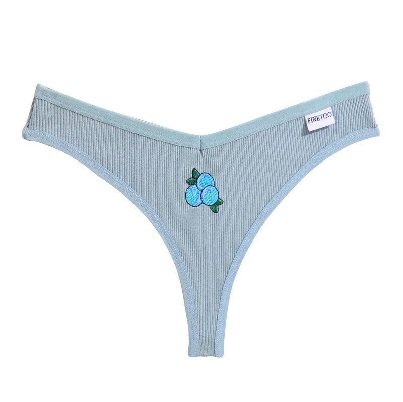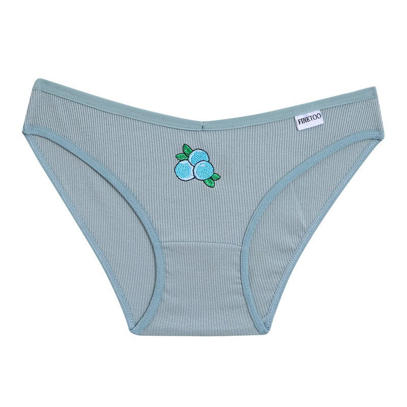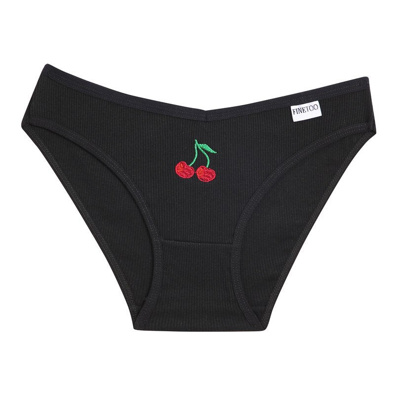 FINETOO Women Fruit Embroidery Panties M-2XL Cotton Underwear Sexy V Waist Briefs Ladies Soft Underpants Girls Panty Lingerie