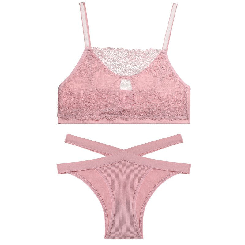 FINETOO Women Lace Bra Set Sexy Hollow Out Underwear Suit M-XL Ladies Seamless Bras Set Soft Tops Low Waist Panties Lingerie Set