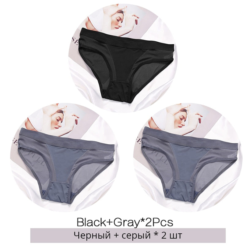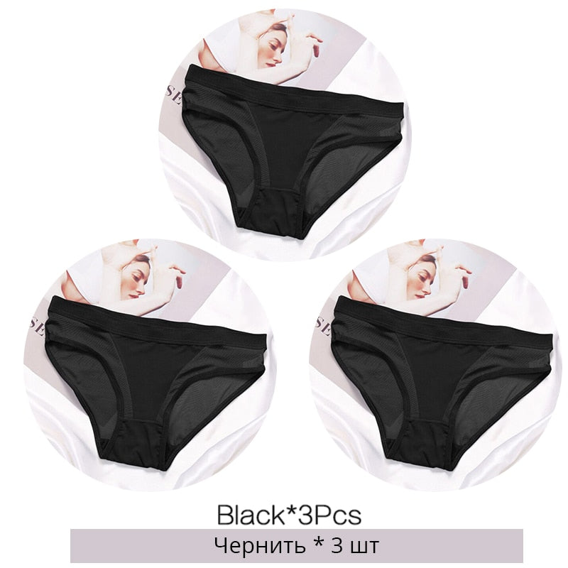 FINETOO Women Low Waist Panties Transparent Mesh Underpants M-2XL Ladies Briefs Female Underwear Fashion Girl Panty Lingerie New
