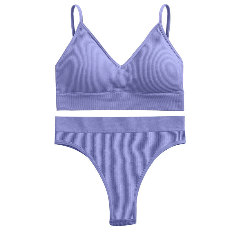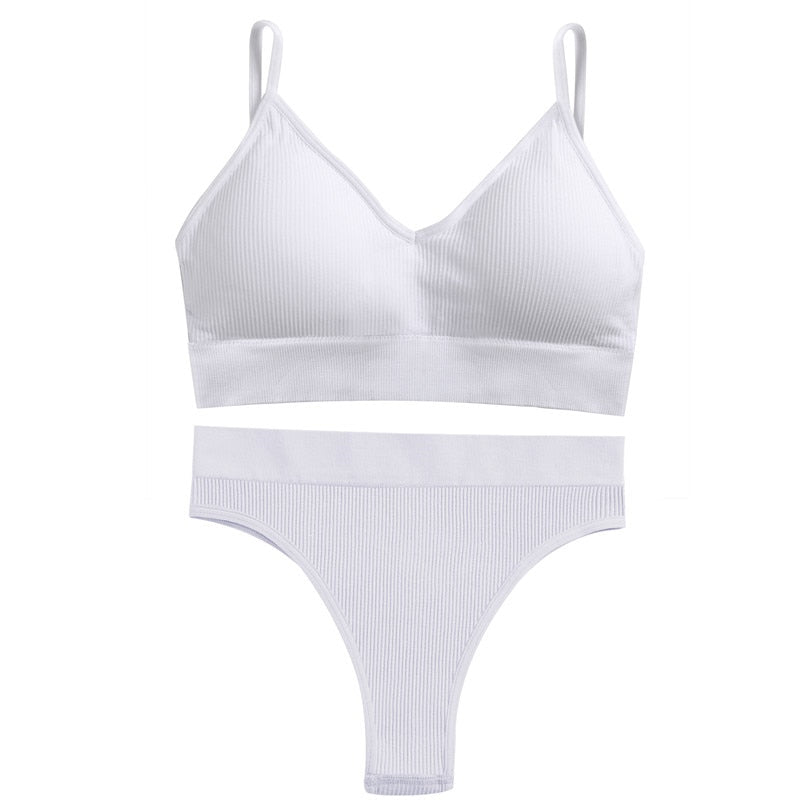 FINETOO Women Seamless Bra Set Push Up 1 Camis+1 Panty Lingerie Sports Underwear Active Sexy Thong Bra Fitness Bikini Crop Top