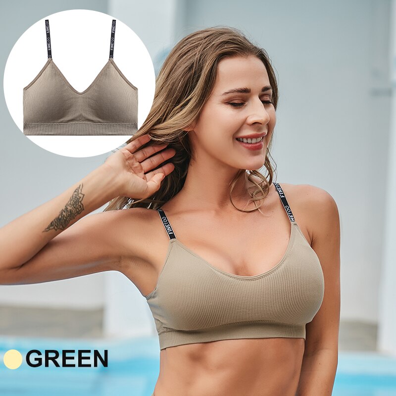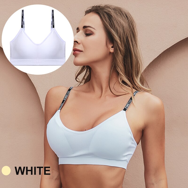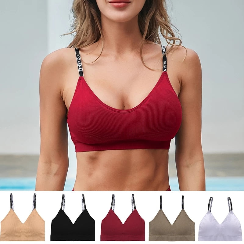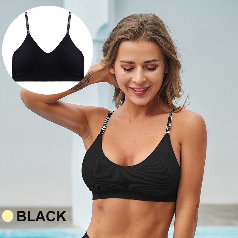 FINETOO Women Seamless Crop Tops Active Sport Short Tops Tank Tee Top Girls Lingerie Tube Camis Letter Sexy Fitness Bandeau Bra