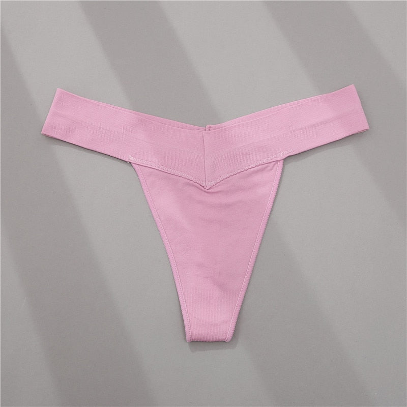 FINETOO Women Thong V Waist G-string 7 Solid Colors Seamless Femme Underwear T-Back Pantys Lingerie Sexy Panties For Girls S-2XL