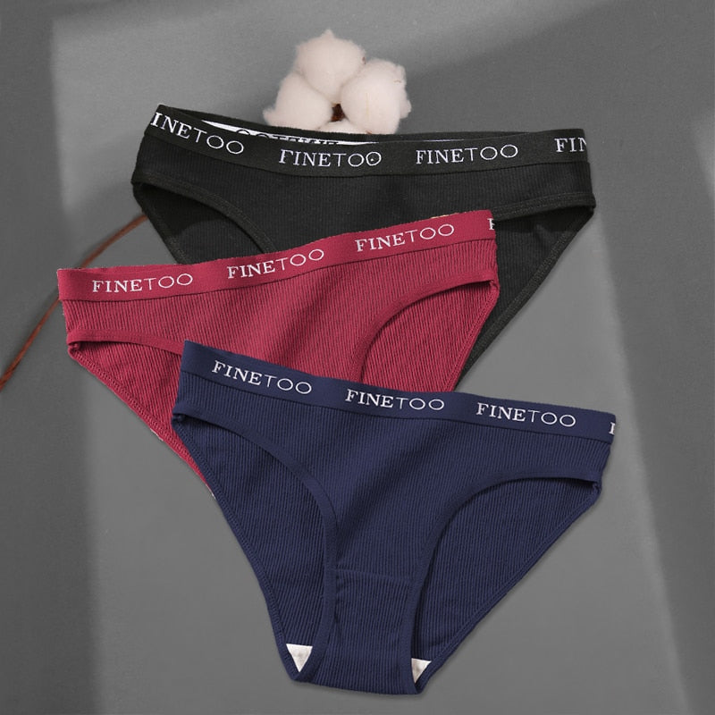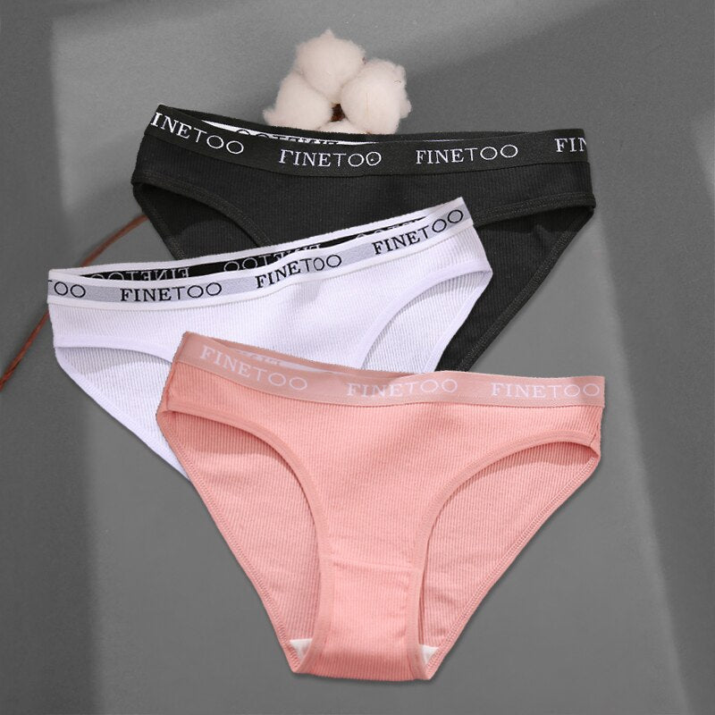 FINETOO Women's Cotton Panties 3Pcs/set Custom Letter Underwear M-2XL Women Briefs Plus Size Underpants Soft Female Panties 2022
