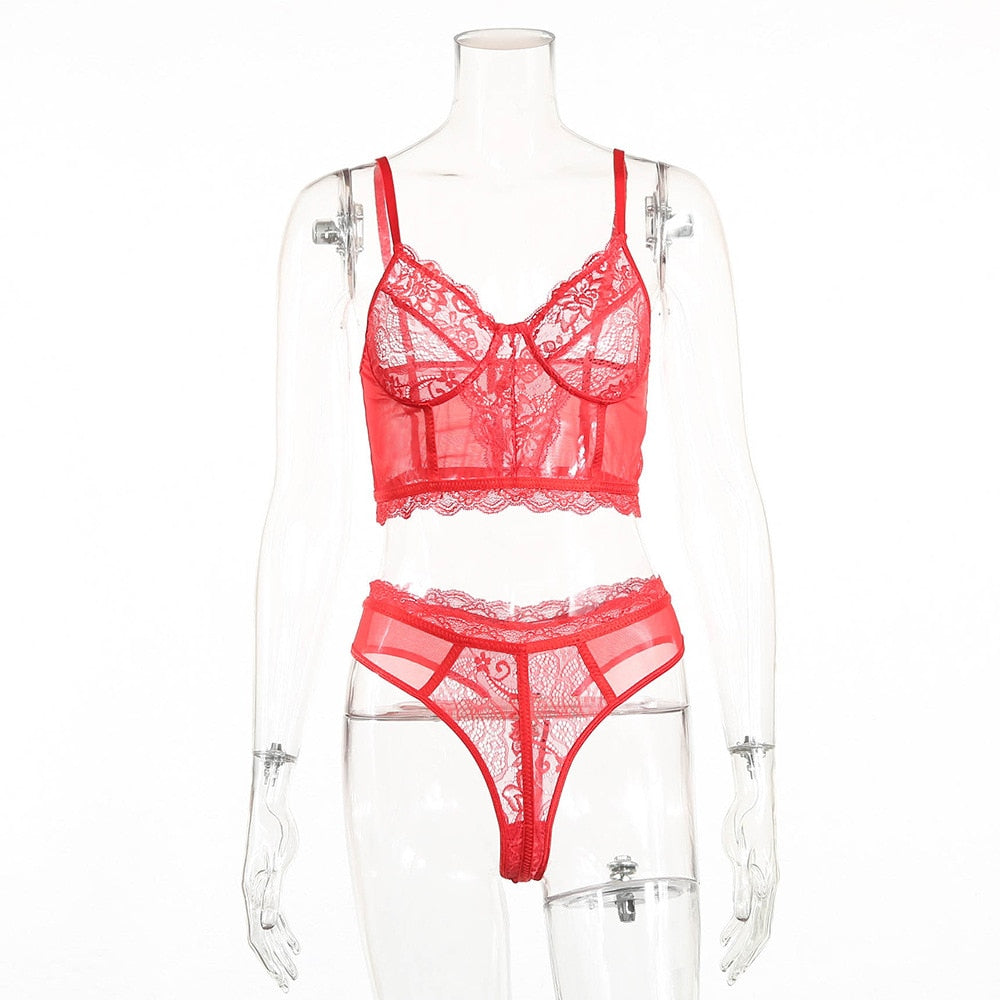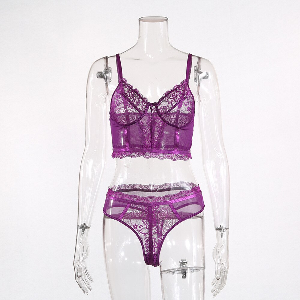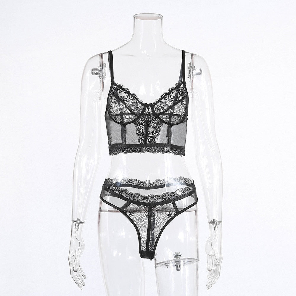 Floral Embroidery Lace Bra Set Women Sexy Lace Underwear 2020 Ladies Fashion Perspective 2-piece Bra Set