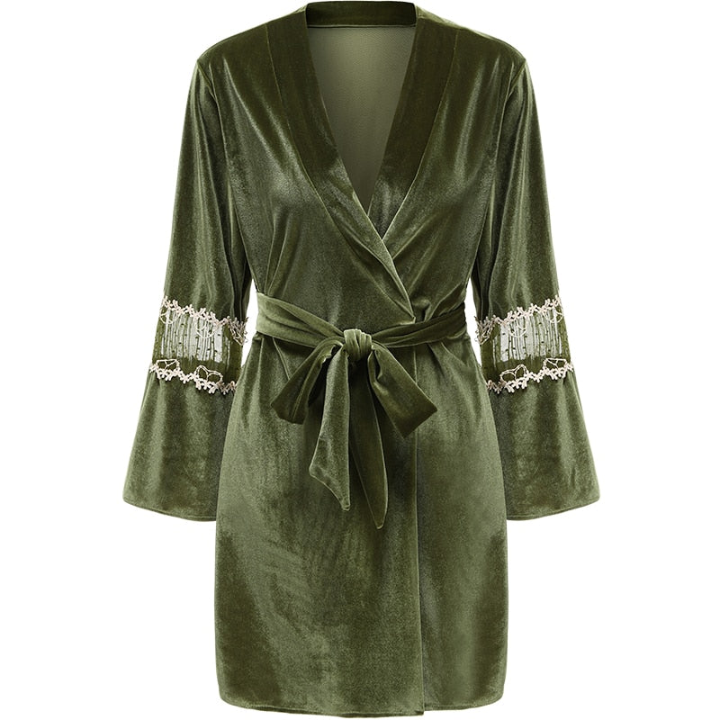 French Sexy Pajamas Women Winter Gold Velvet Nightdress Lace Bathrobe Nightwear Warm Thick Home Wear Nightgown Sleepwear