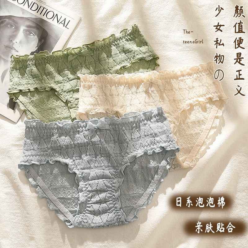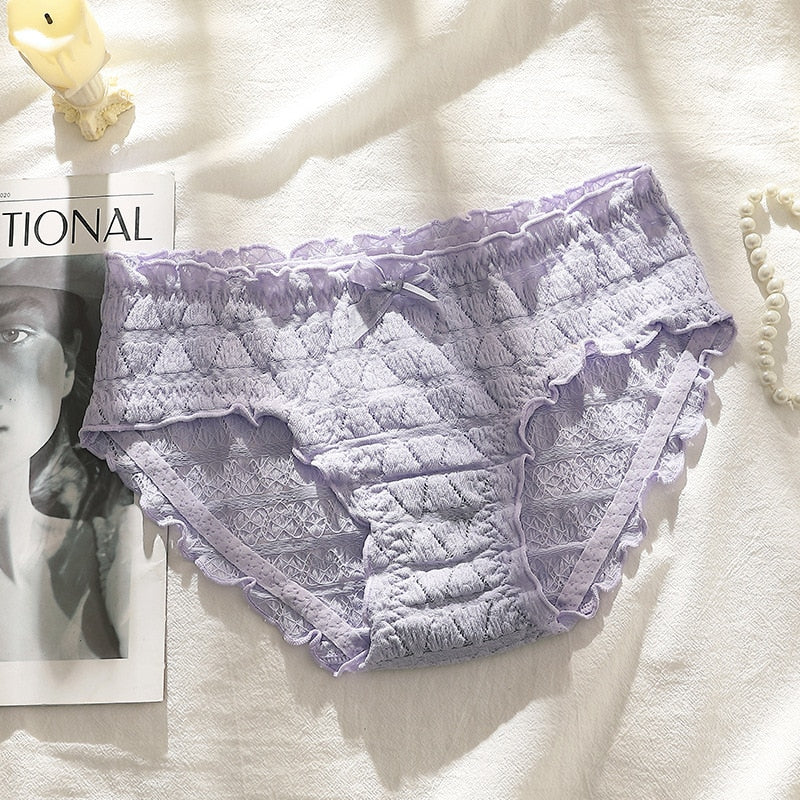 French Sexy Panties Plus Size Women's Cotton Underwear Girls Fashion Comfort Briefs Sexy Lace Underpants Female Bow Lingerie