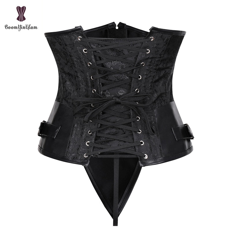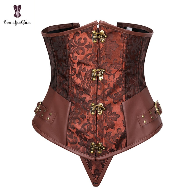 Gothic Steampunk Heavy Duty Waist Cincher Underbust Corset Bustier Trainer Plus Size S-6XL