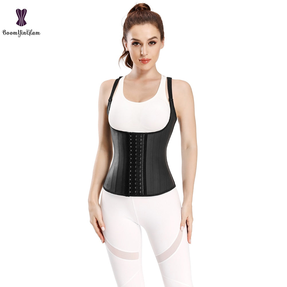 Hook Adjustable Waist Trainer 25 Steel Boned Slimming Corset Workout Girdle Vest Latex Women Body Shaper Plus Size XS -6XL