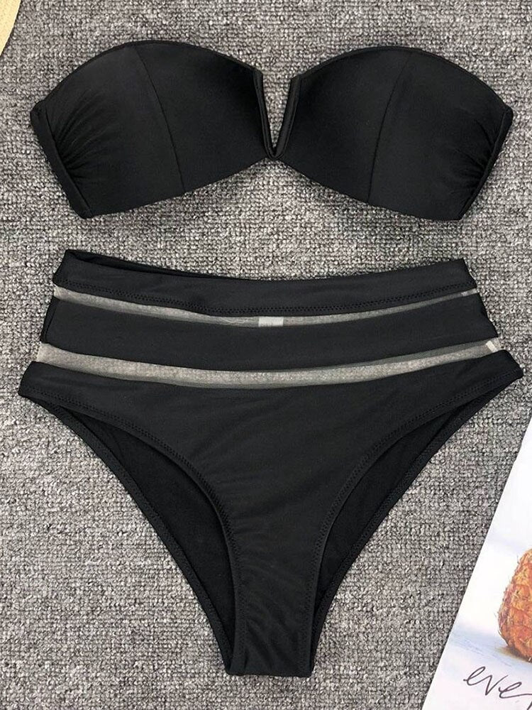INGAGA Sexy Push Up Bikini Bandeau Swimwear High Waist Women's Swimsuit 2022 V-wired Bathing Suit Black Biquini Women Beachwear