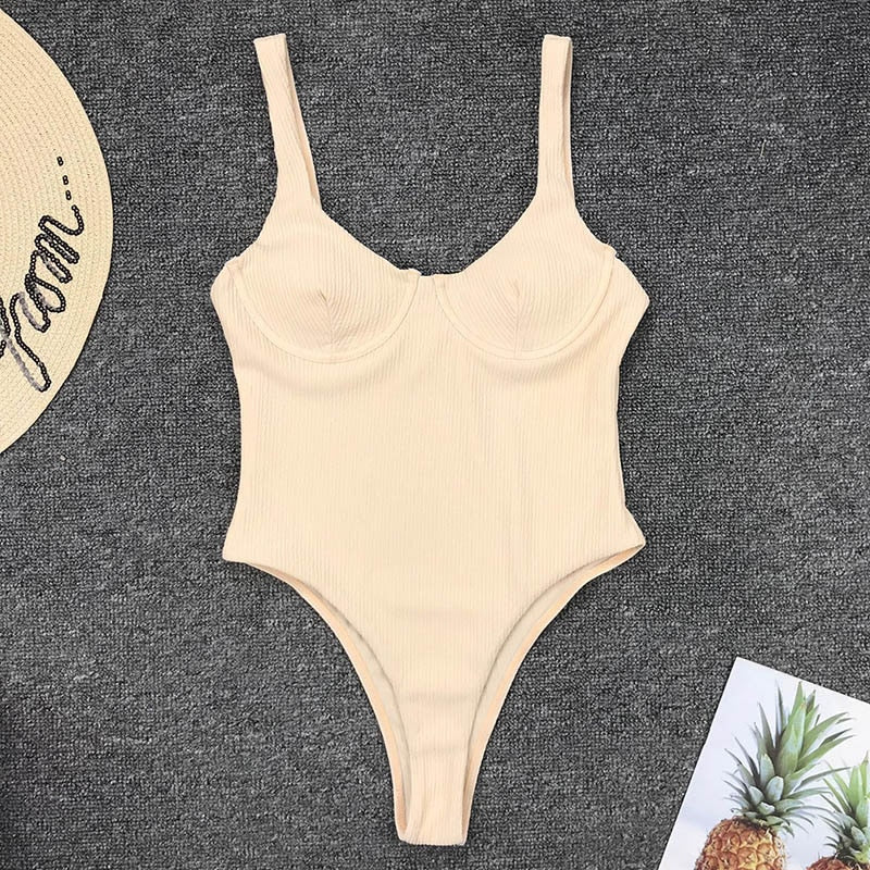 INGAGA Sexy Push Up Swimsuit One Piece Ribbed Swimwear Women 2022 New High Cut Bodysuit Women 2022 Solid Bathing Suits Beachwear
