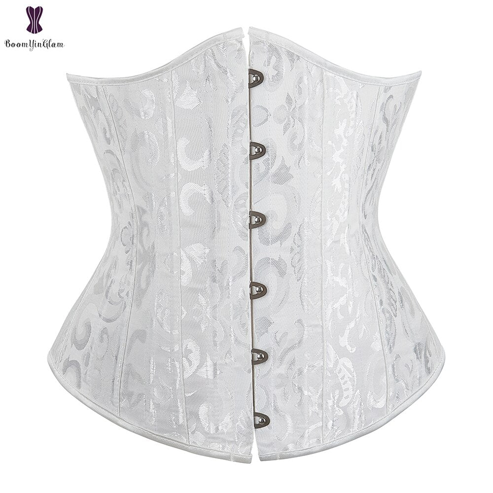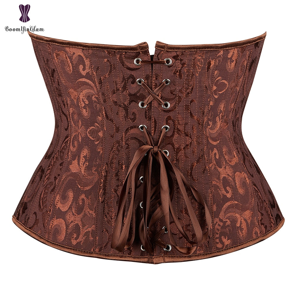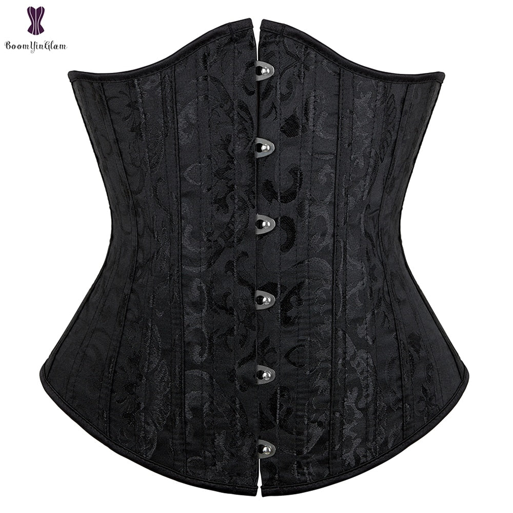 Jacquard 26 Spiral Steel Boned Underbust Corset Black White Brown Steampunk Bustier Top #2834