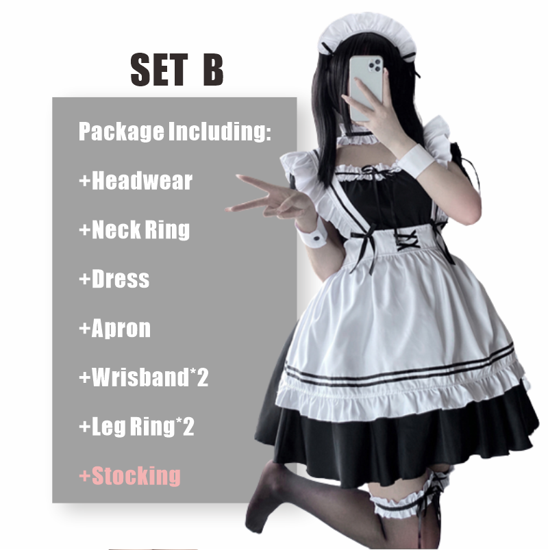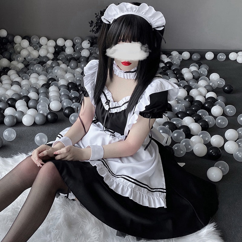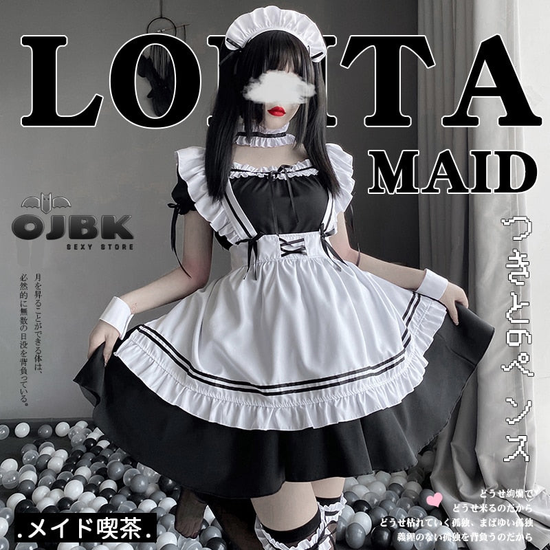 Japanese Anime Cosplay Costume High Quality Black White Maid Outfit Apron Dress Plus Size Women Sexy Lingerie Stage Uniform New