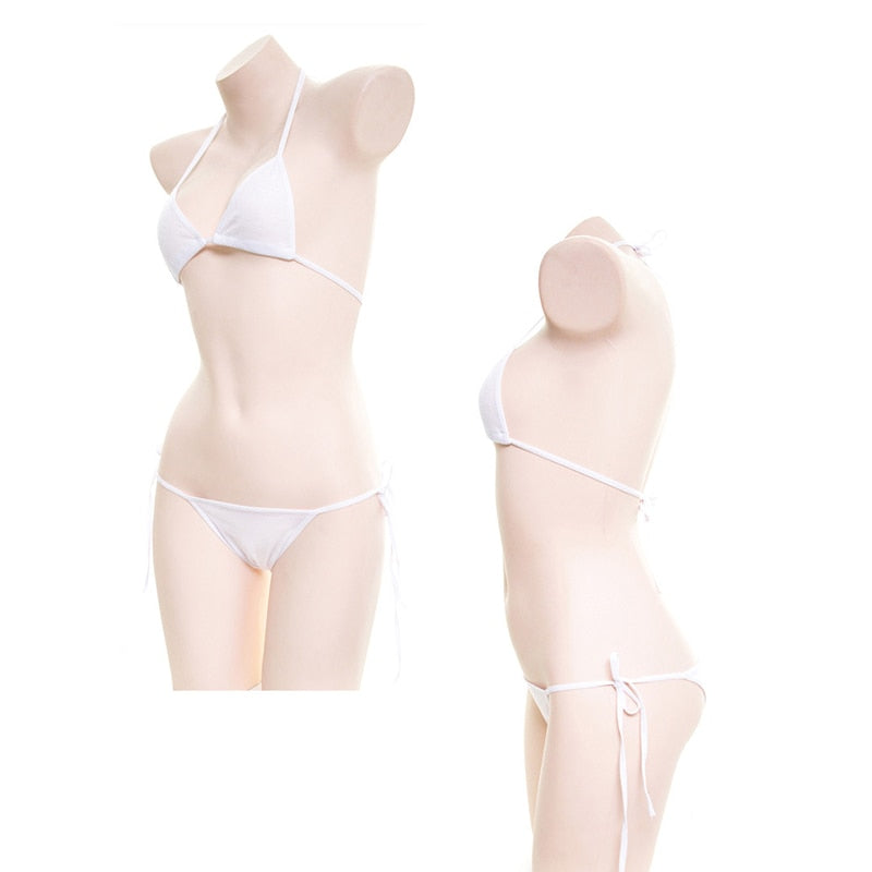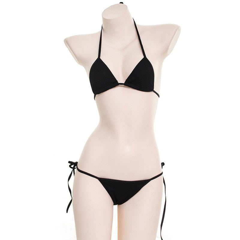 Japanese Women White Black Bikini Set Simple Design Underwear Set Sexy Lingerie Lolita Kawaii Cotton Adult Cosplay Costumes Bra