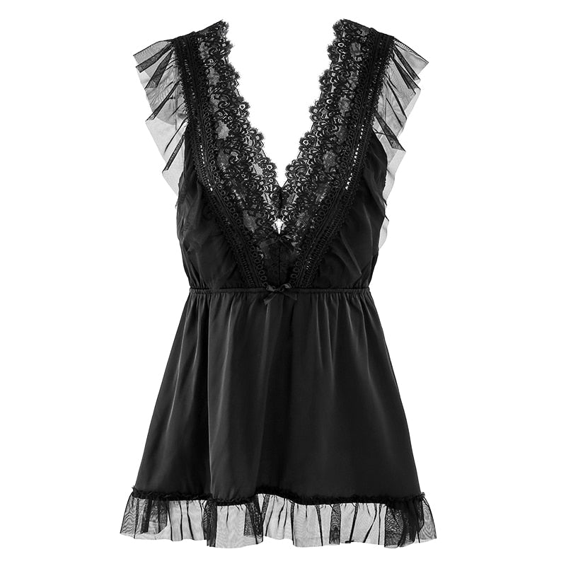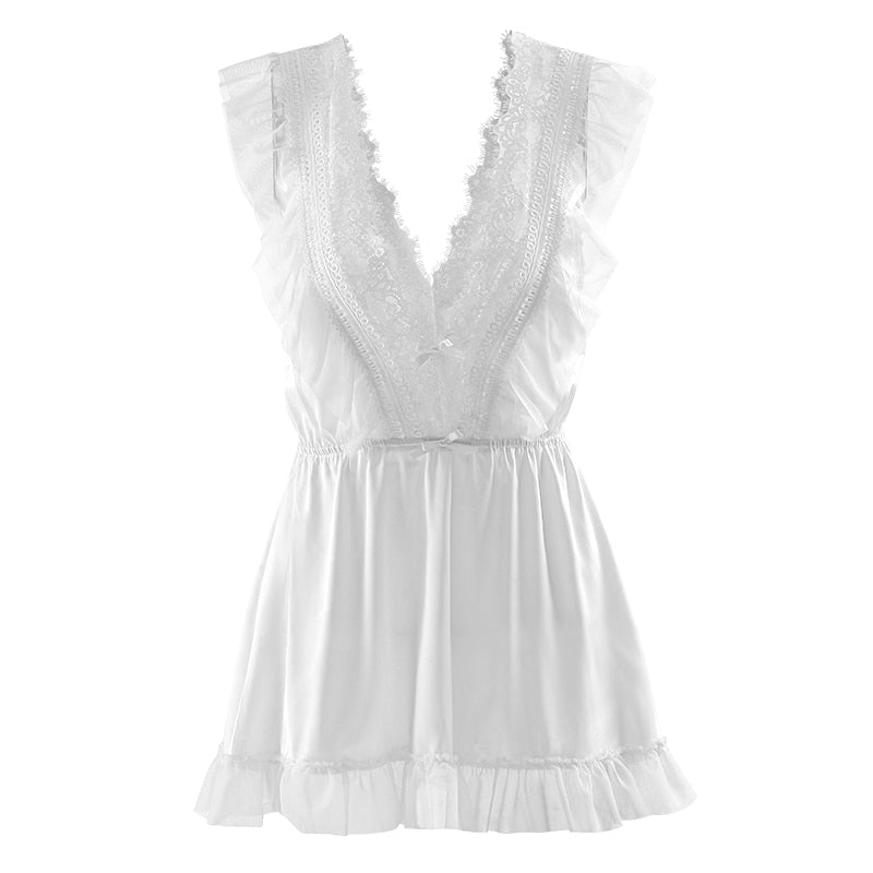 Kawaii Lingerie Young Women Summer Ice Silk Nightdress 2021 New Lace Seductive Sexy Nightgown Suspender Nightgowns