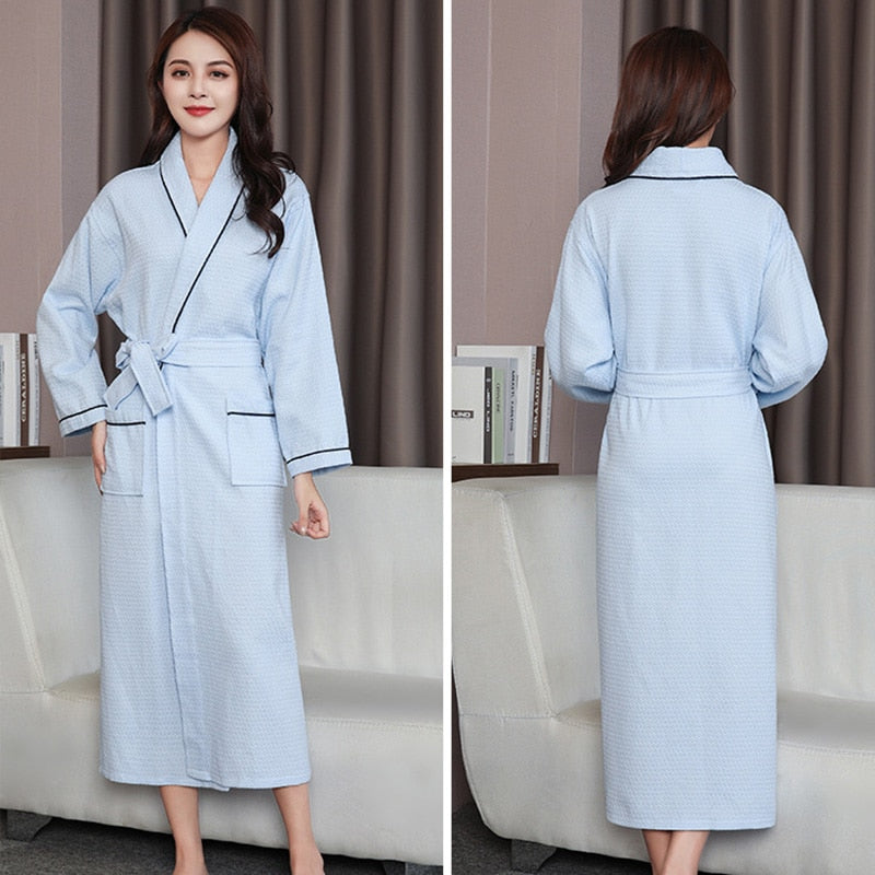 Knitted Waffle Cotton Bathrobe Sexy Kimono Robe Unisex Men Women Couple Robes 5 Star Hotel Bathrobe Nightwear Plus Size