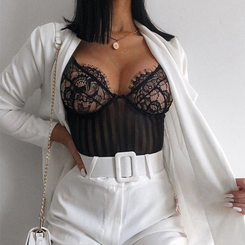 Lace Bodysuit Women Floral Embroidery Perspective Sexy Bodysuit 2020 Ladies Skinny Summer Overalls Body Femme