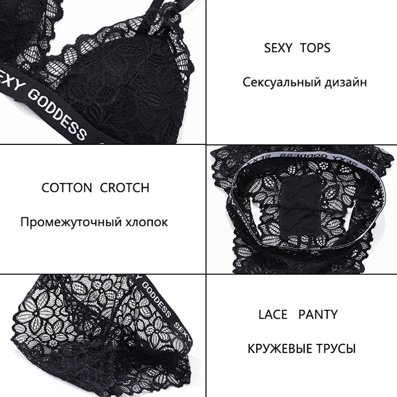 Lace Bra Set Sexy Women Tank Crop Top Panties Suit Backless Female Underwear Woman's Bralette Floral Lingerie Brassiere for Girl