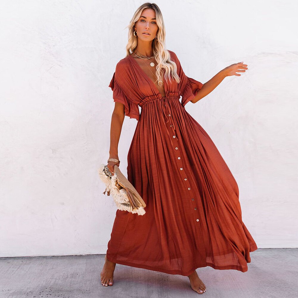 Leaves Print Bikini Beach Cover up Tunics for Beach Long Kaftan Bikini Cover up Robe de Plage Sarong Beach Swimsuit cover-ups