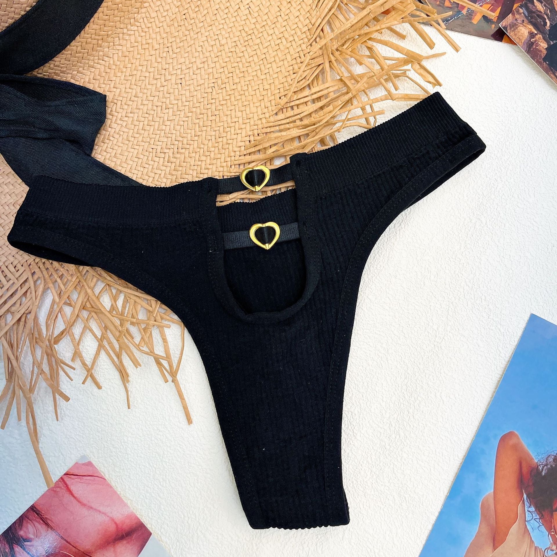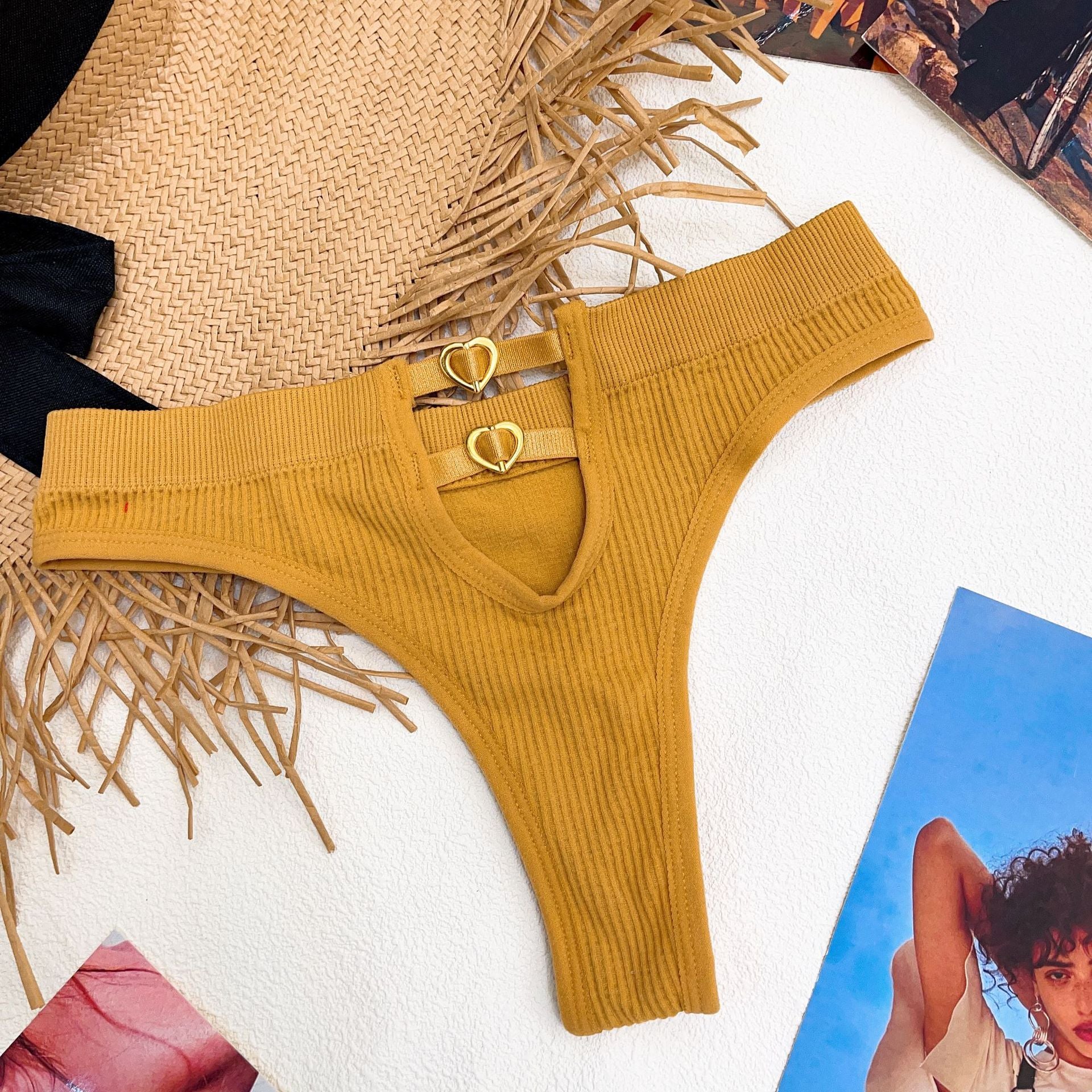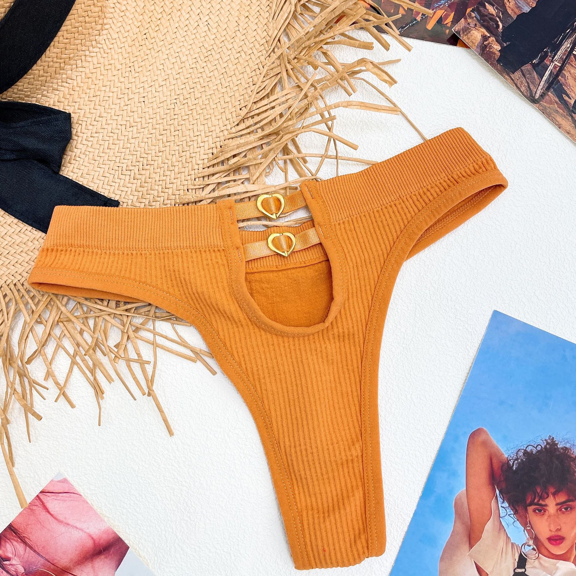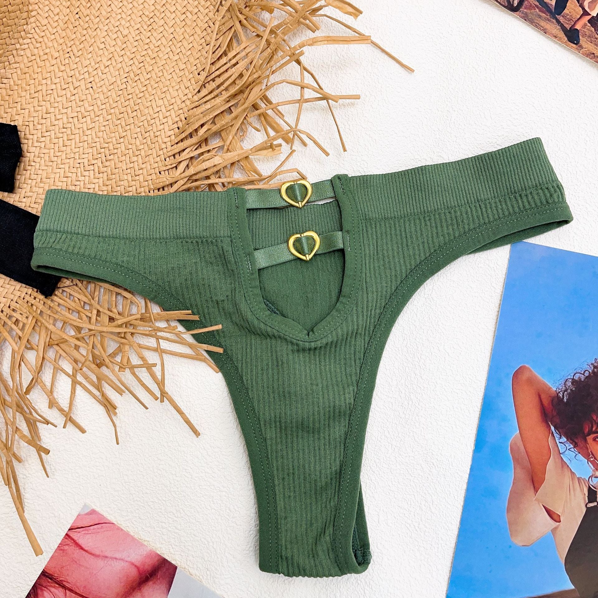 New EuropeanStyle Thong Sexy Solid Color Panties Fashion Metal Hollow Out G-String Mid Waist Seamless Underpants Female Lingerie