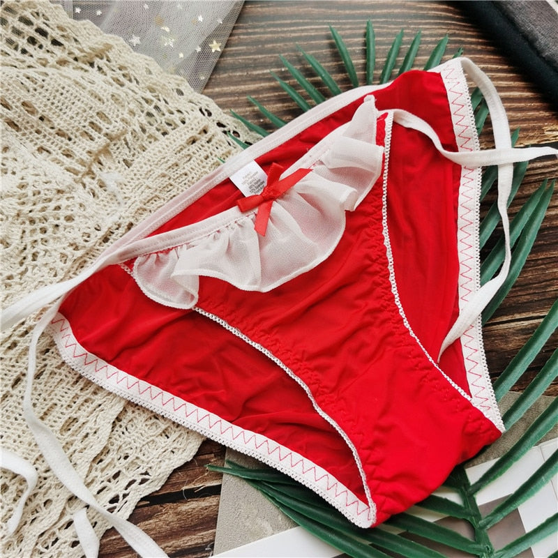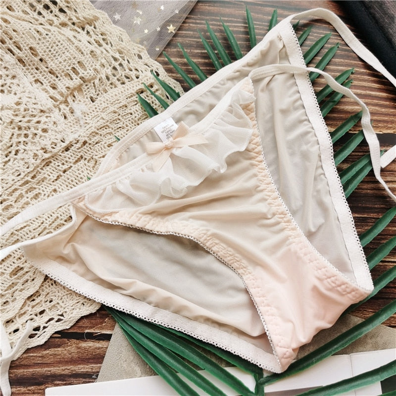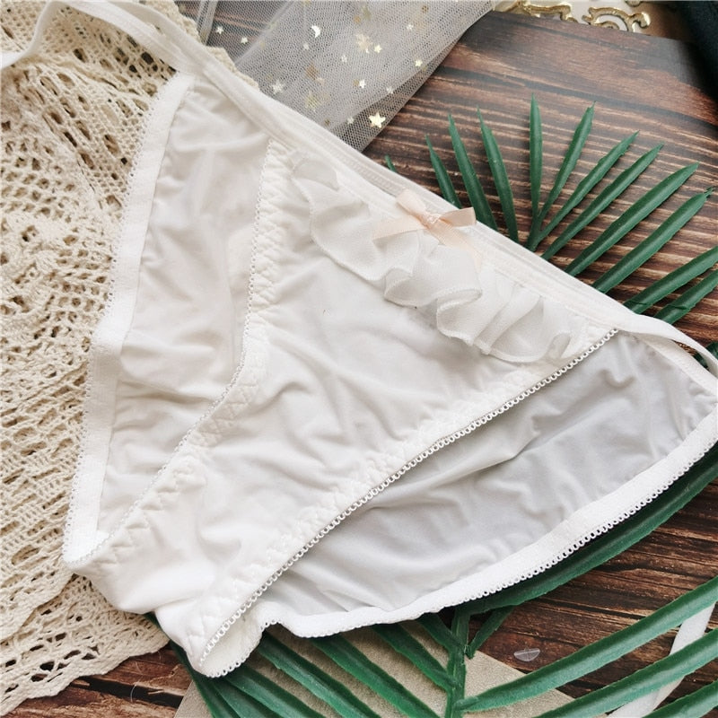 New Japanese Style Ice Silk Panties Sexy Lace Panties Fashion Bow Comfort Briefs Low Waist Seamless Underpants Female Lingerie