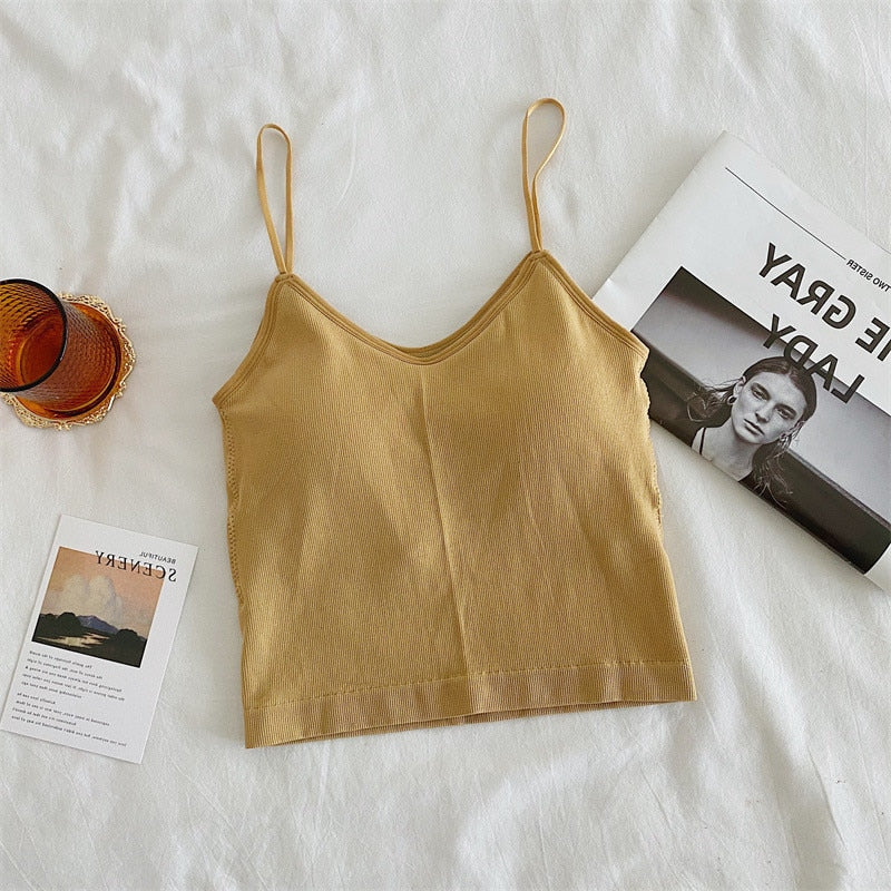 New Women Cotton Underwear Sexy Solid Color Top Fashion Push Up Comfort Tank Up Non Steel Ring V-Neck Suspender Female Lingerie