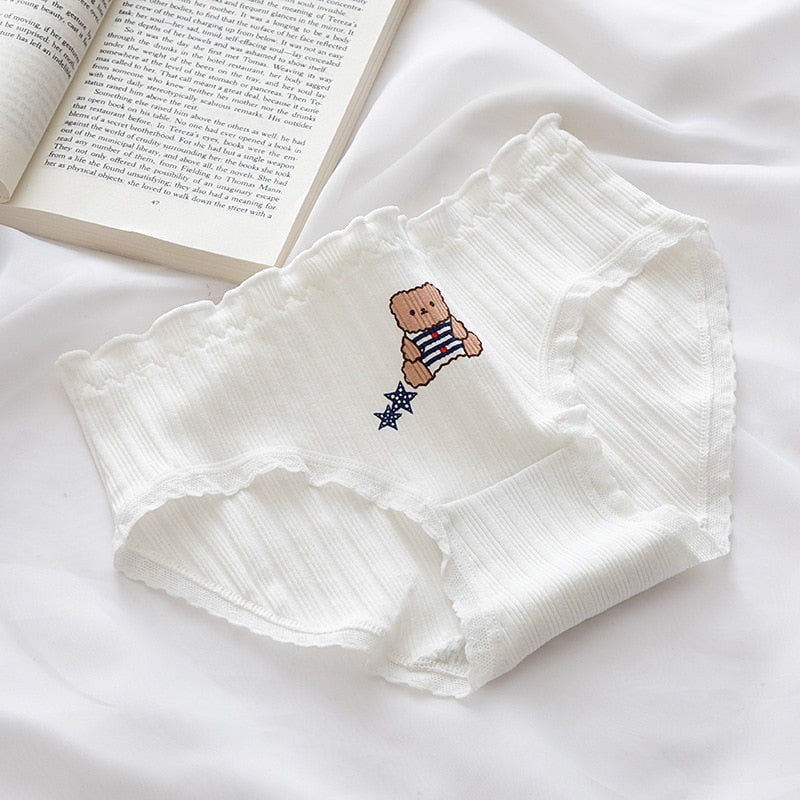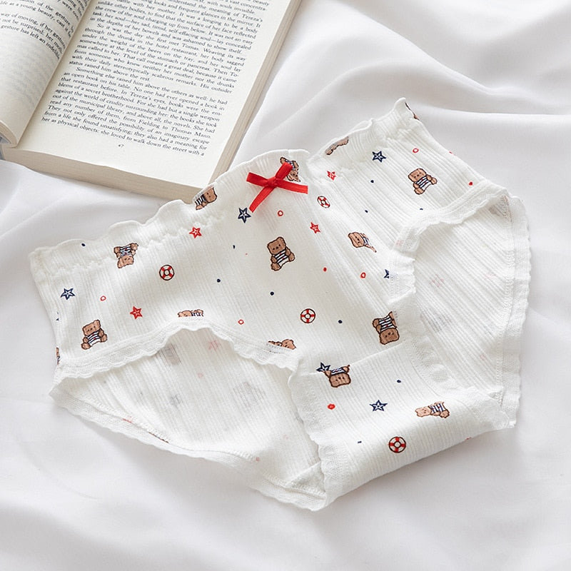 New Women's Cotton Underwear Sexy Lace Panties Fashion Cartoon Comfort Briefs Mid Waist Seamless Underpants Female Lingerie