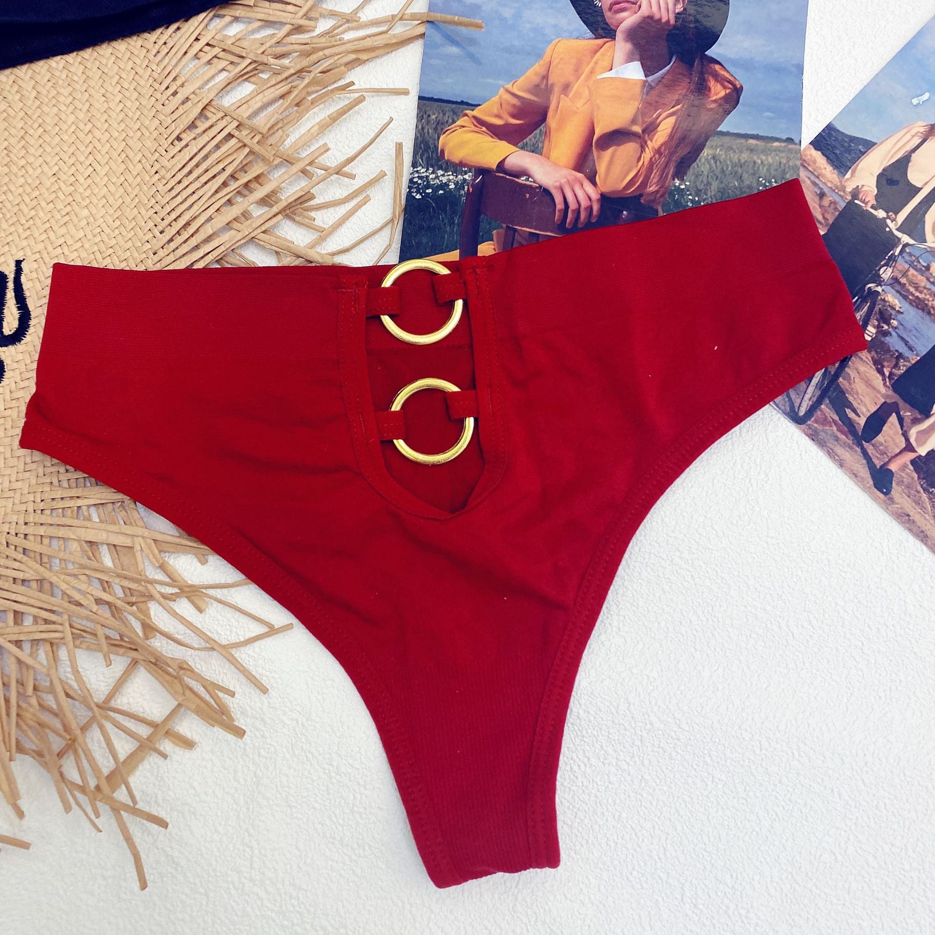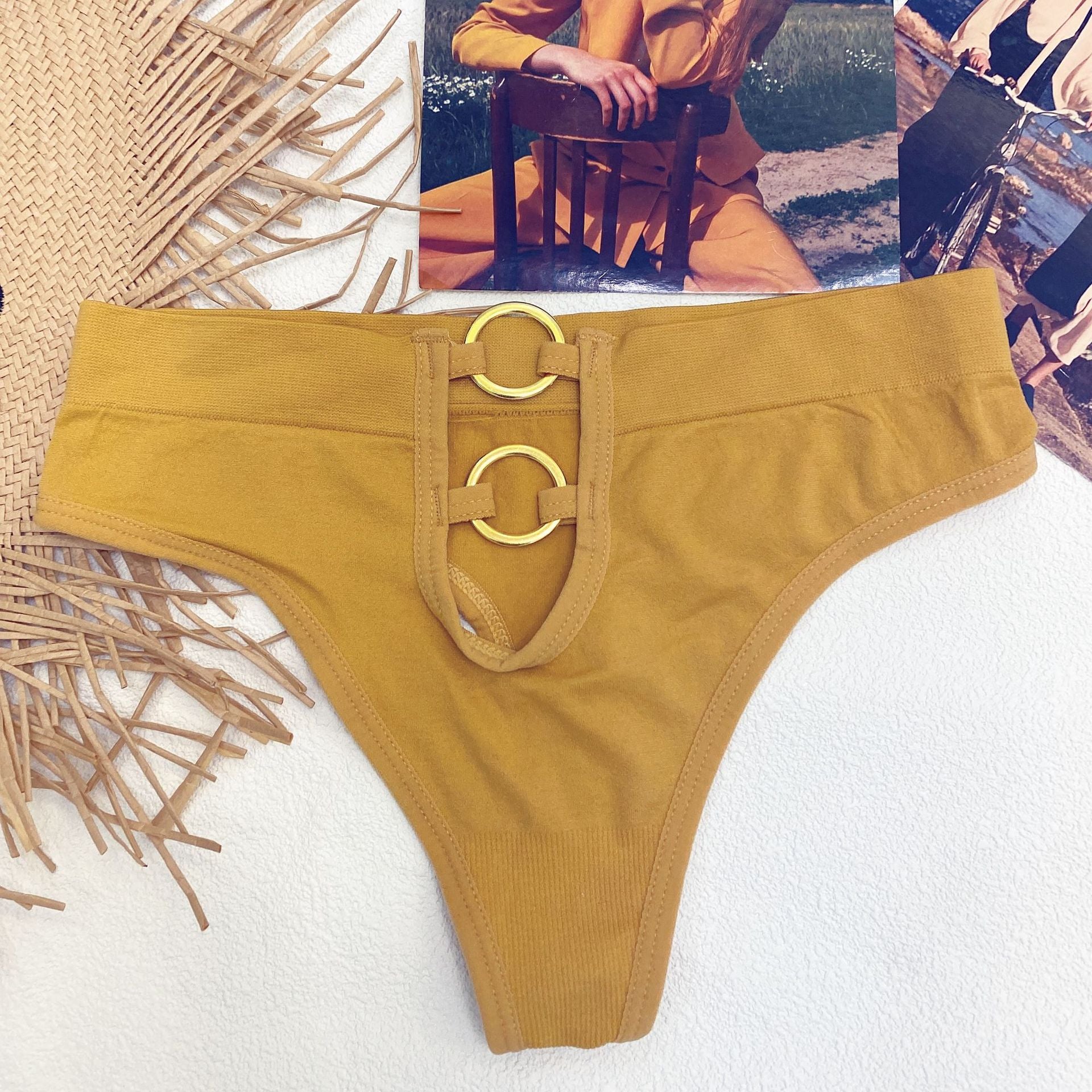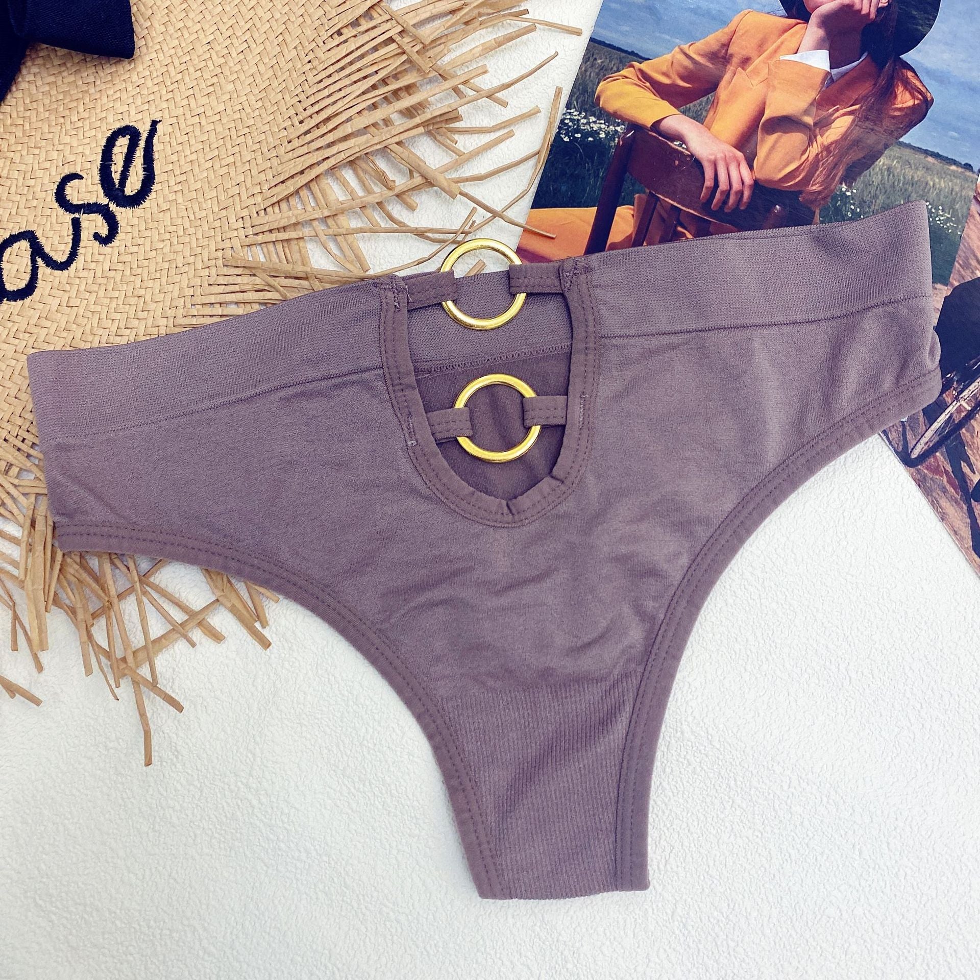 New Women's Underwear Sexy Solid Color Panties Fashion Metal Ring Comfort Briefs Mid Waist Seamless Underpants Female Lingerie