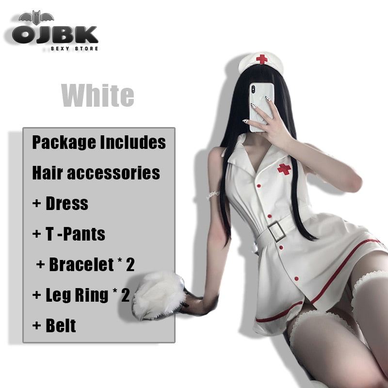 OJBK New Erotic Sexy Lingerie Sweet White And Black Sleeveless Nurse Cosplay Uniform Passion Temptation Fancy Dress Dropshipping