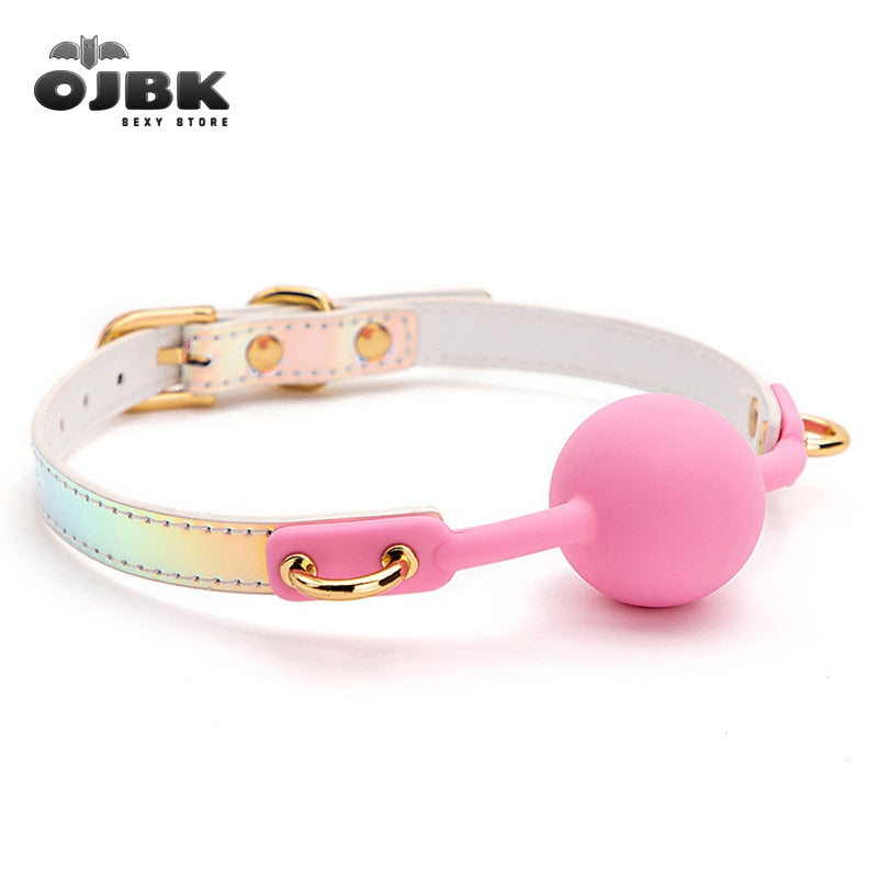 OJBK Sex Toys For Couples Adult Games Colorful Soft Silicone Ball Gag Oral Fixation PU Leather Conquer ToysBondage Mouth Gag