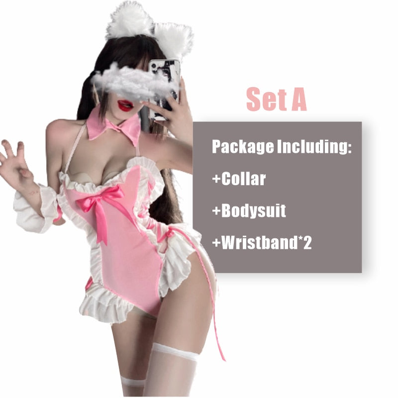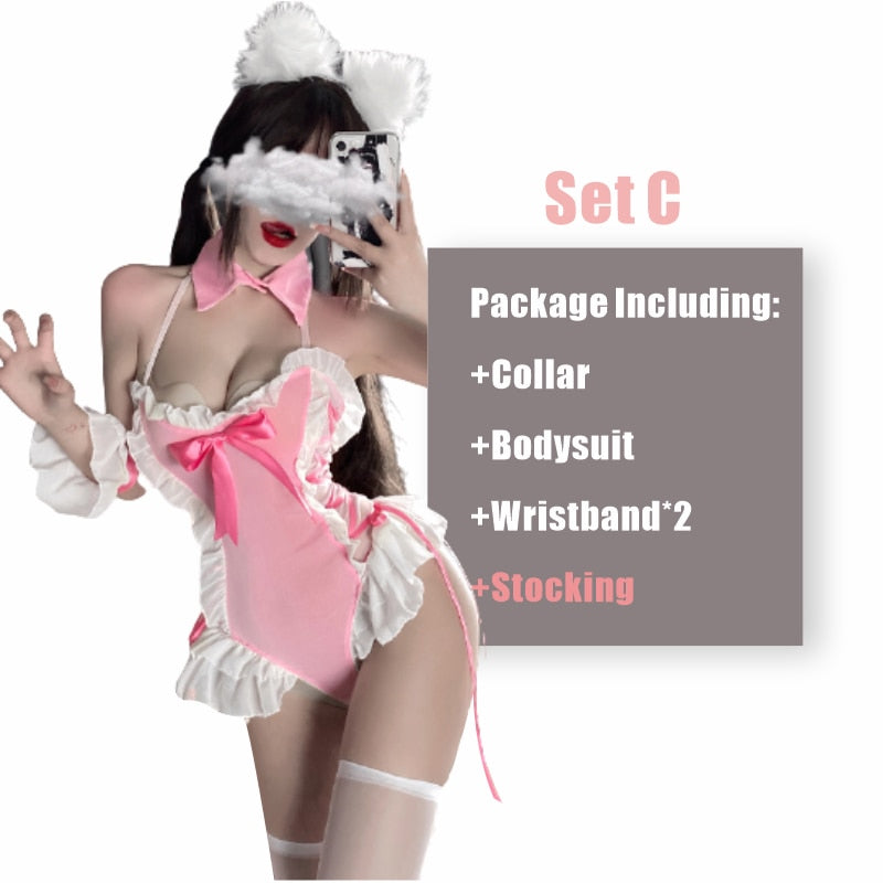 OJBK Sexy Bunny Girl Jumpsuit Anime Cosplay Costume Female Cute Pink Bodysuit Sexy Temptation Lingerie Uniform Porno Bunny Suit