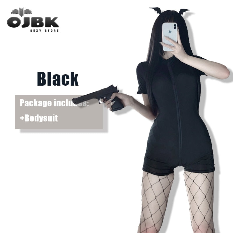 OJBK Store Sexy Two-way Zipper Open Chest Crotch Design Doggy Style Bodysuit Slim Waist Big Ass Butt Outfit For Women 2020 New